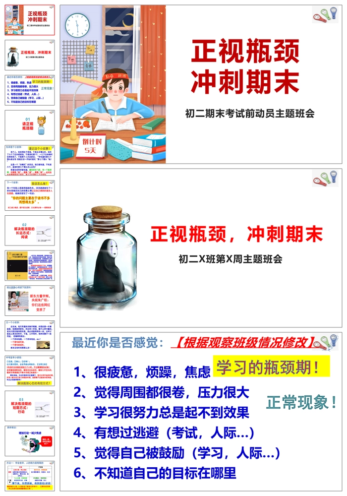 【8040】【期末动员】《正视瓶颈冲刺期末》初二期末考试前动员主题班会PPT课件
