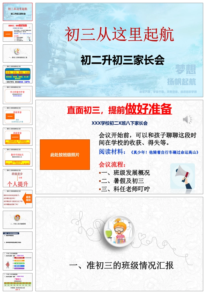 【8076】【主题班会】《初三从这里起航》初二升初三家长会PPT课件