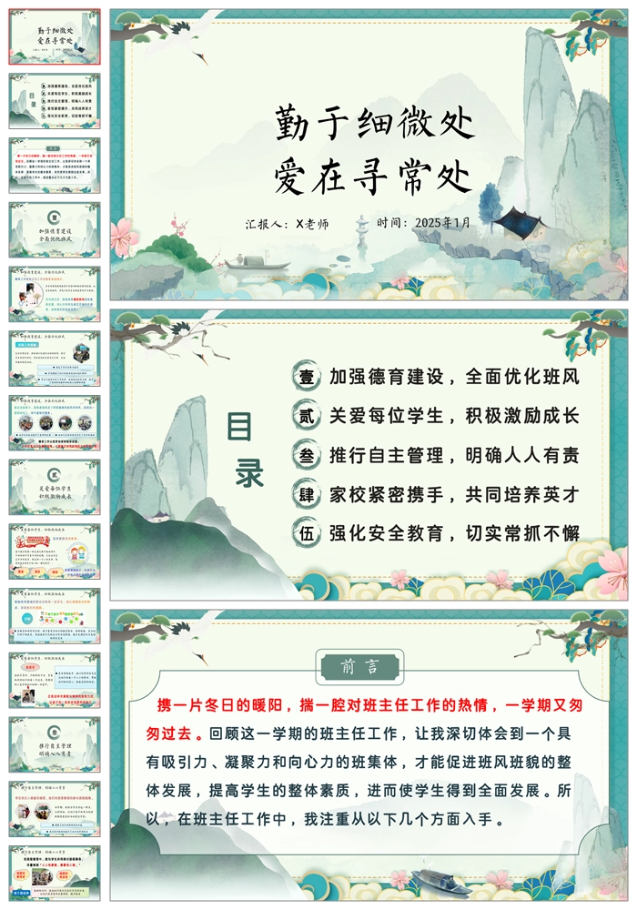 【8412】【工作总结】《勤于细微处爱在寻常处》班主任工作总结述职报告PPT(课件+配套发言稿)