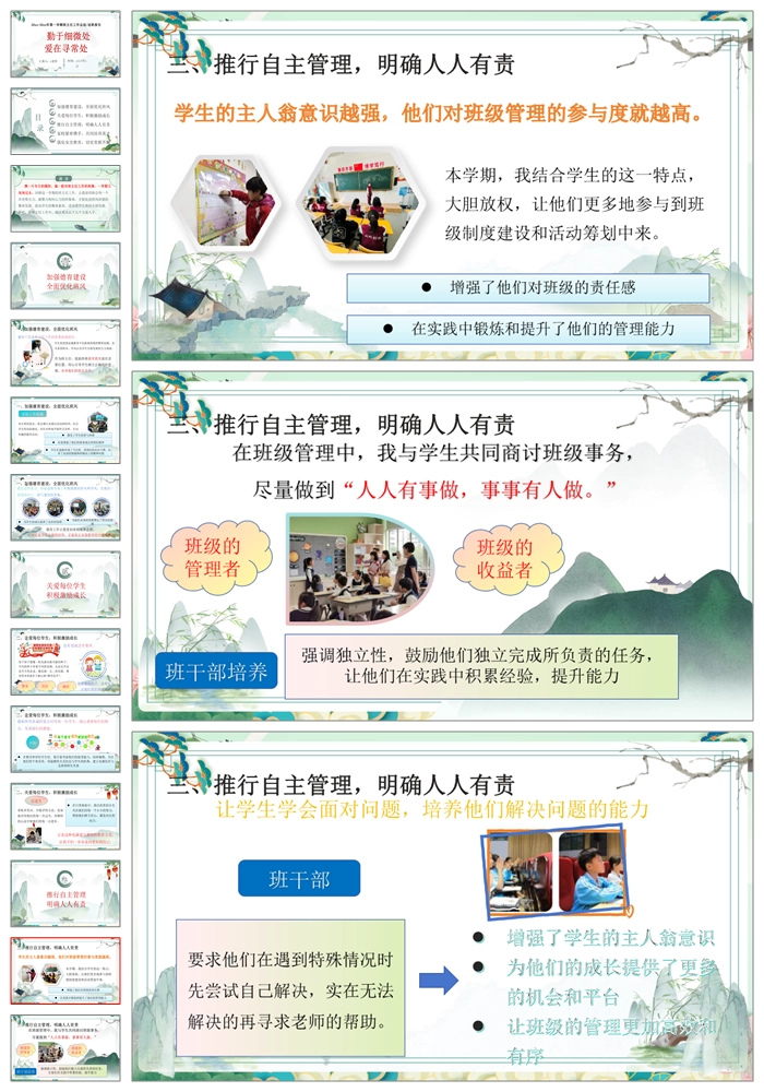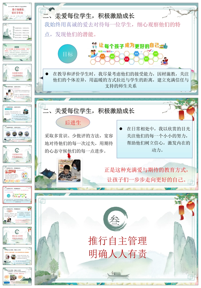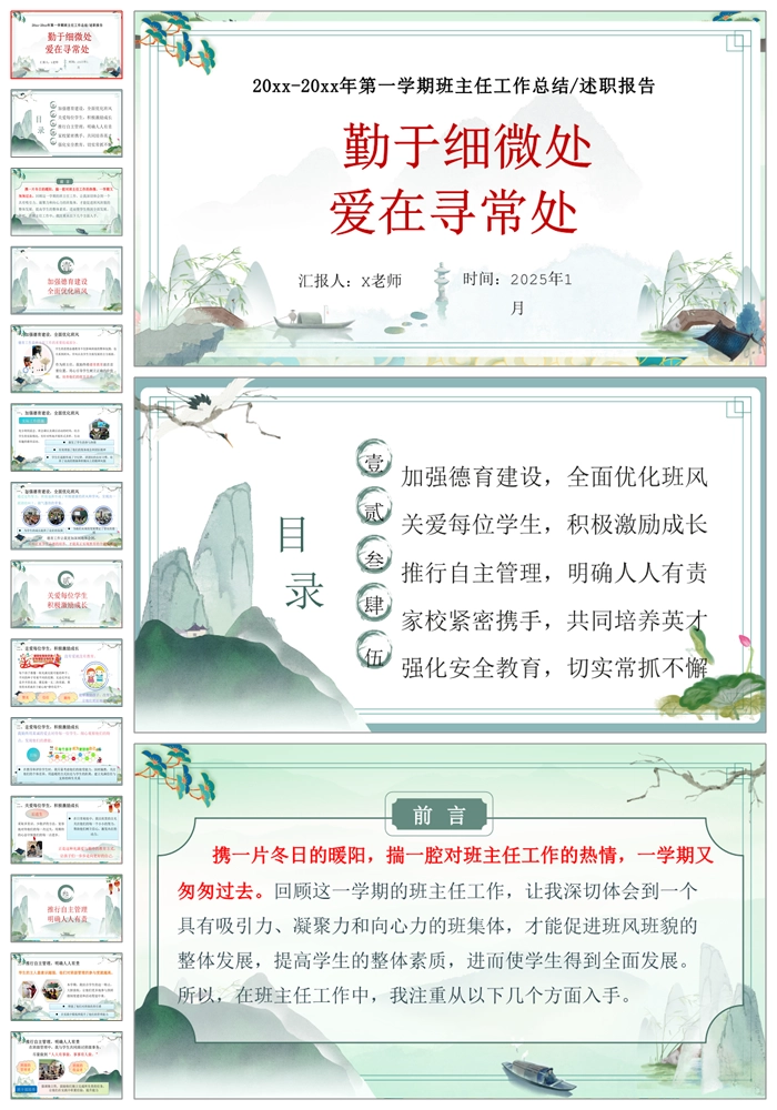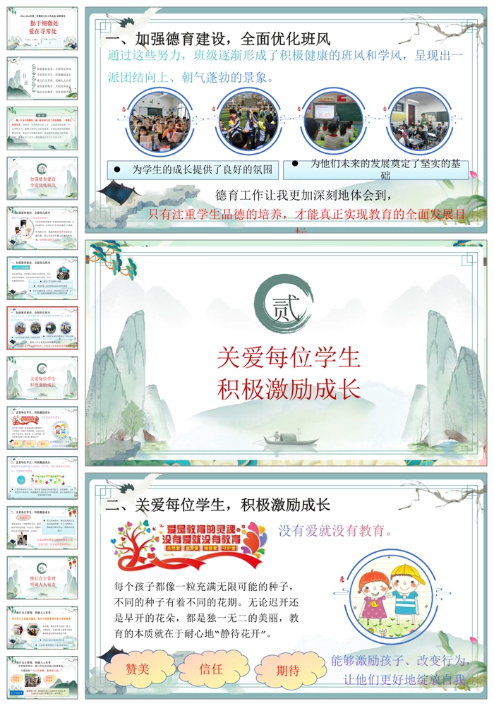 【8447】【工作总结】《勤于细微处爱在寻常处》班主任工作总结述职报告PPT(课件+配套发言稿)