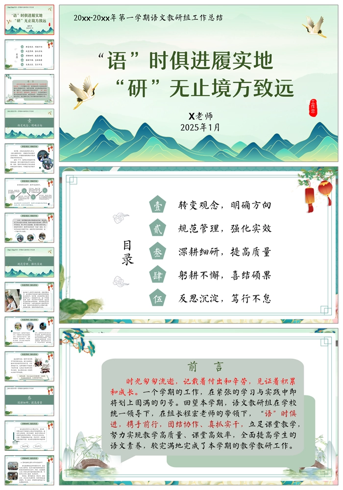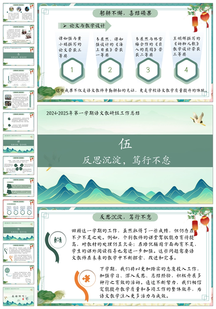 【8452】【工作总结】《“语”时俱进履实地》语文教研组工作总结PPT课件+发言稿