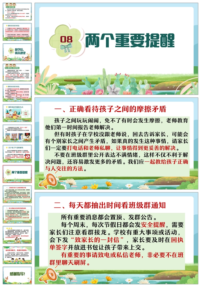 【8469】【一年级家长会】一年级新生入学家长会《家校携手共育花开》PPT课件+发言稿