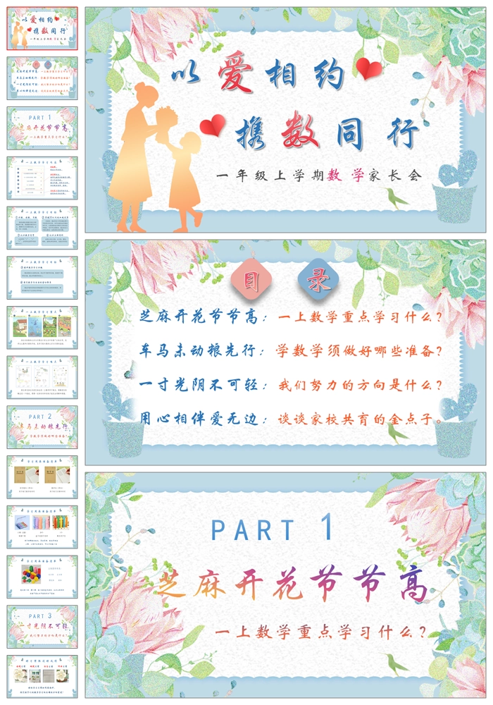 【5074】人教版一上数学开学家长会一年级上学期数学开学家长会PPT课件+发言稿+暖场视频