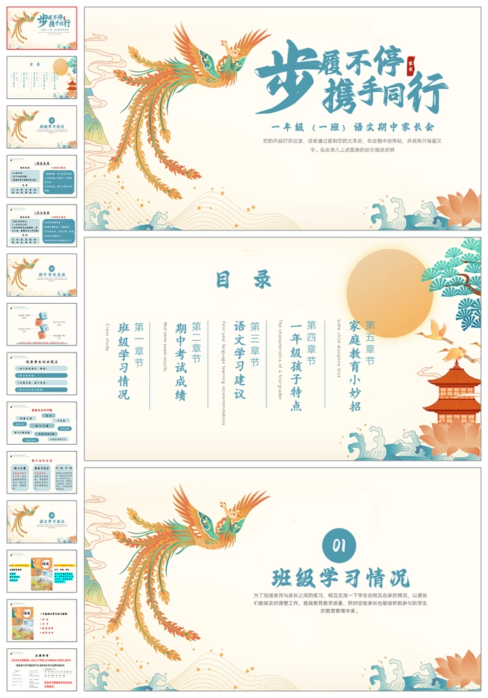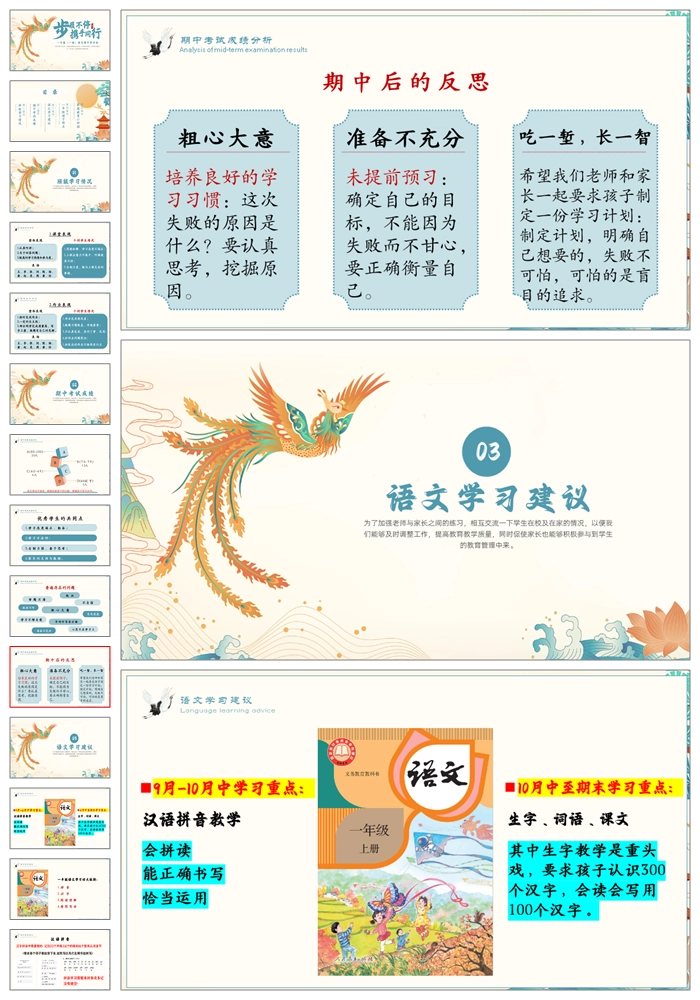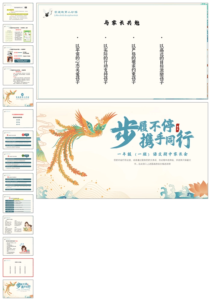 【5098】一上语文期中家长会《步履不停携手同行》一年级上学期语文期中家长会ppt课件+发言稿+暖场视频