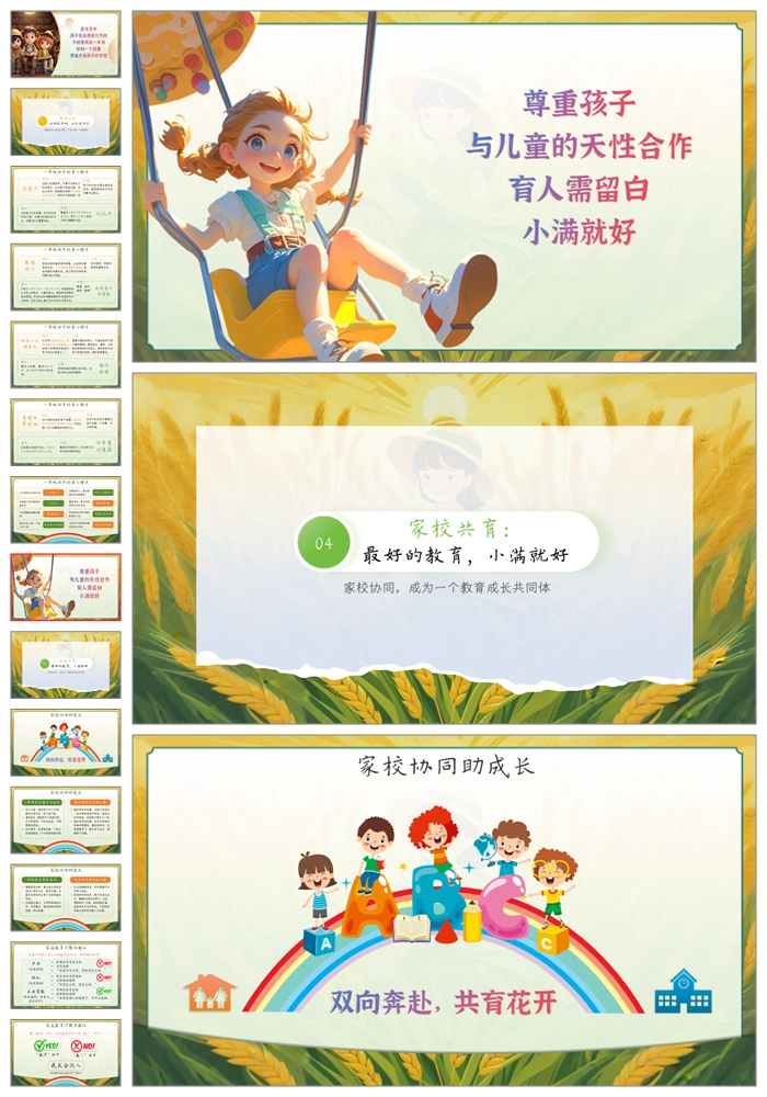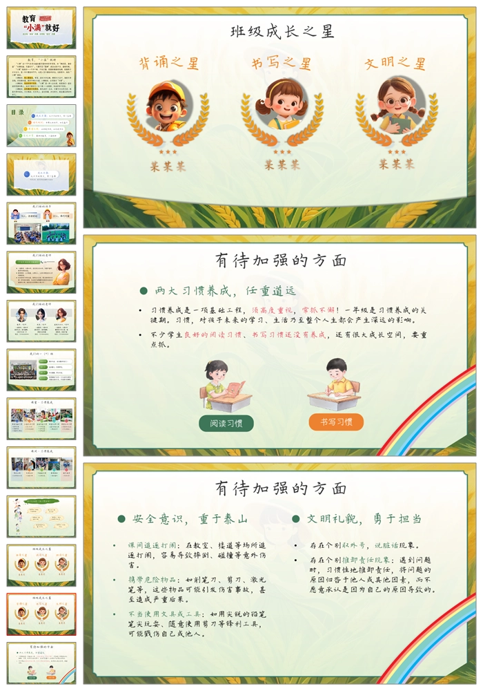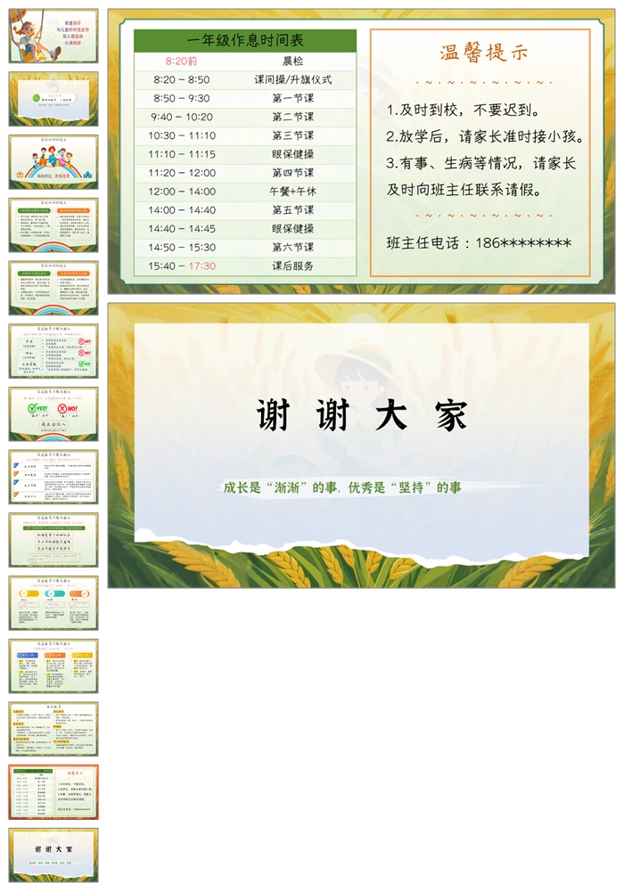 【5105】一上语文期中家长会《教育小满就好》一年级期中家长会ppt课件+发言稿