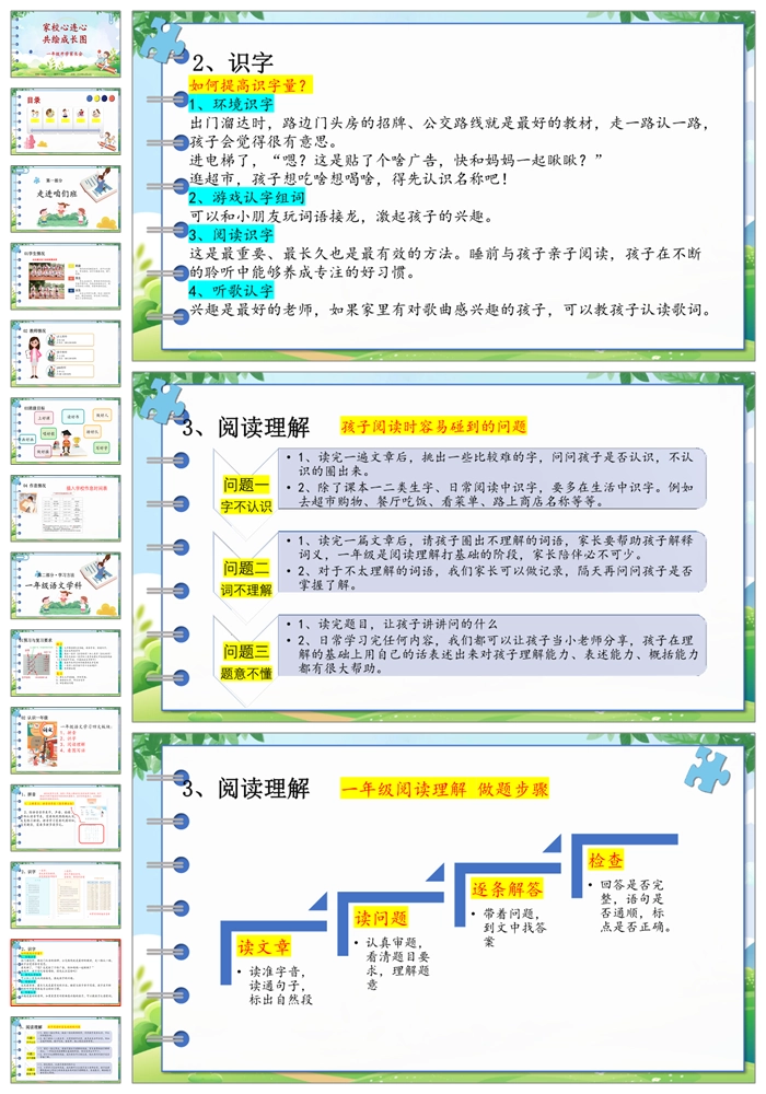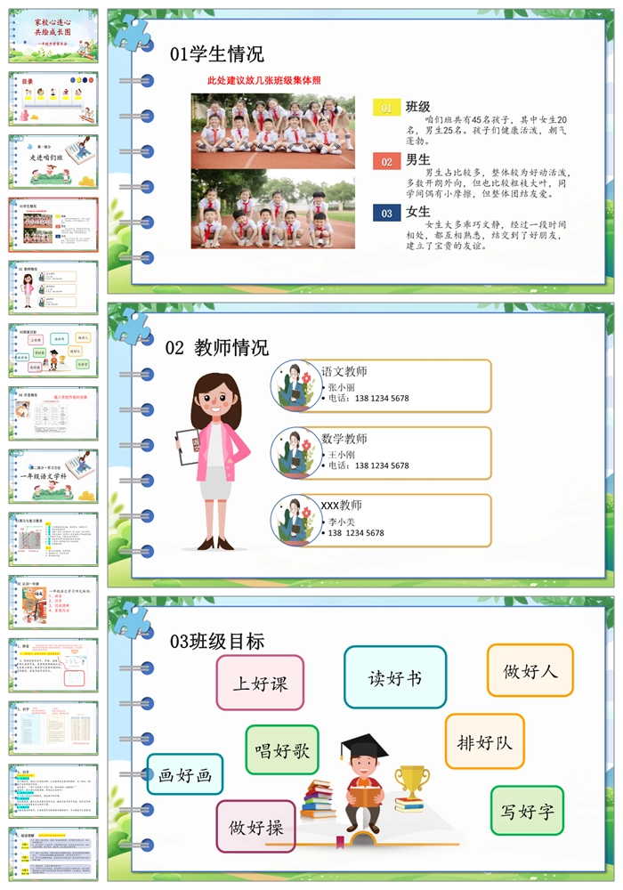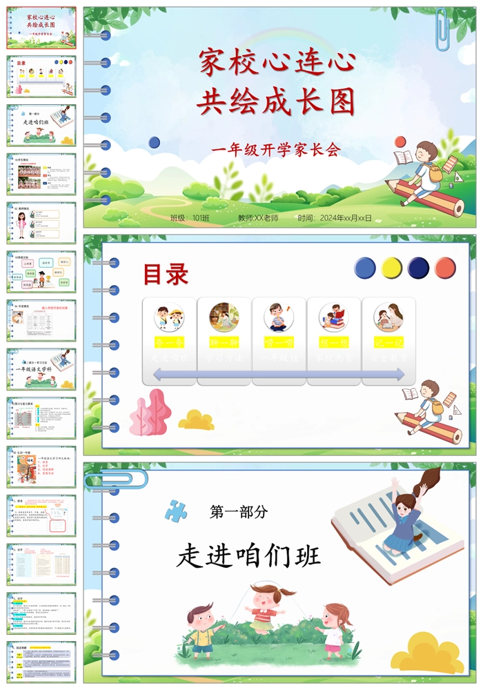 【8185】【一年级家长会】《家校心连心共绘成长图》一年级开学家长会PPT(课件+讲稿)