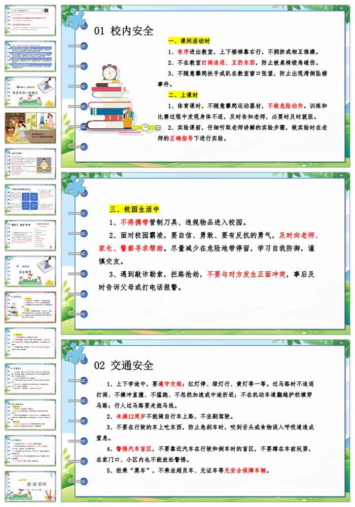 【5889】中学小学寒假安全教育主题班会PPT课件+文字稿