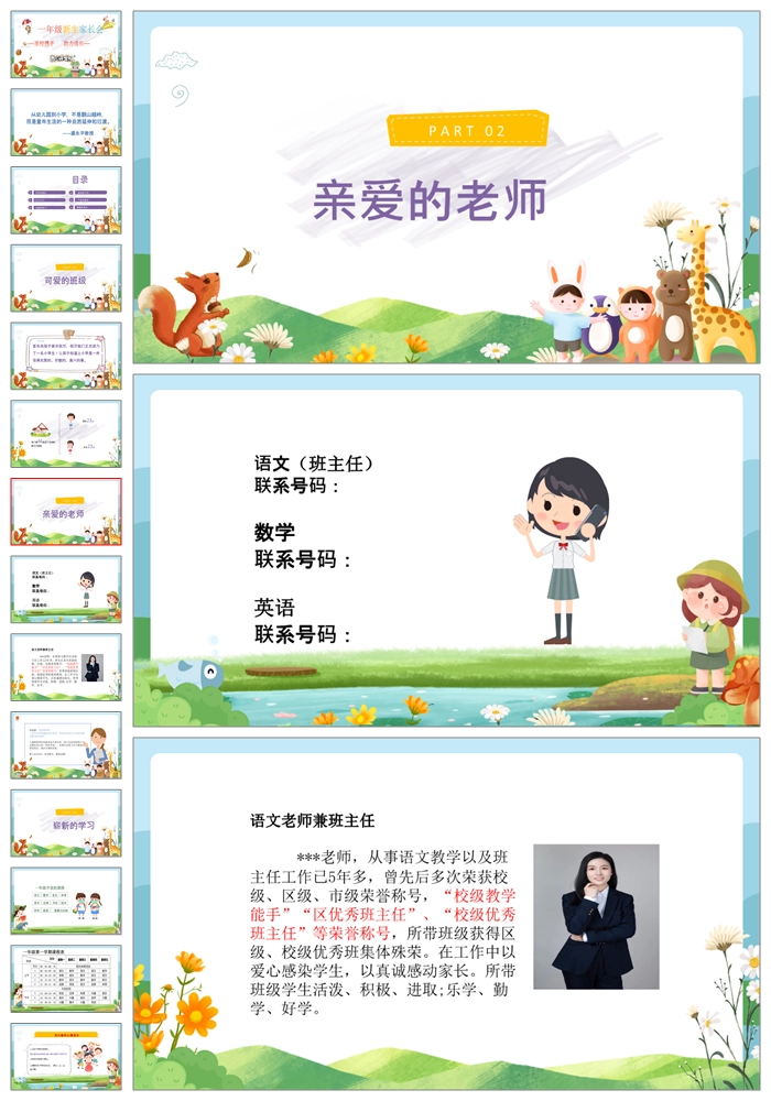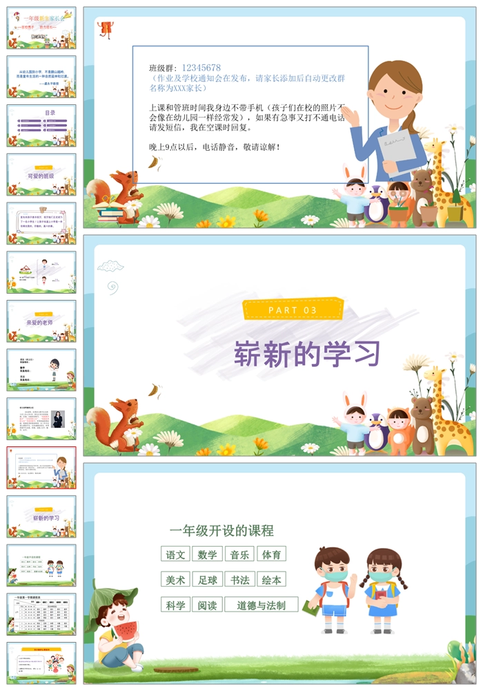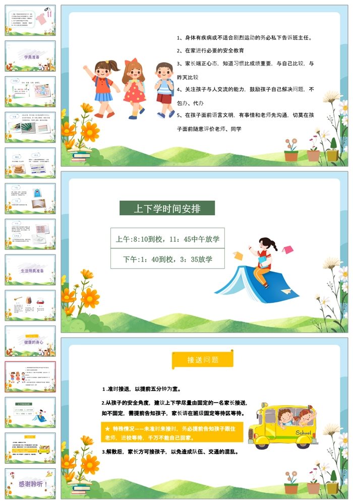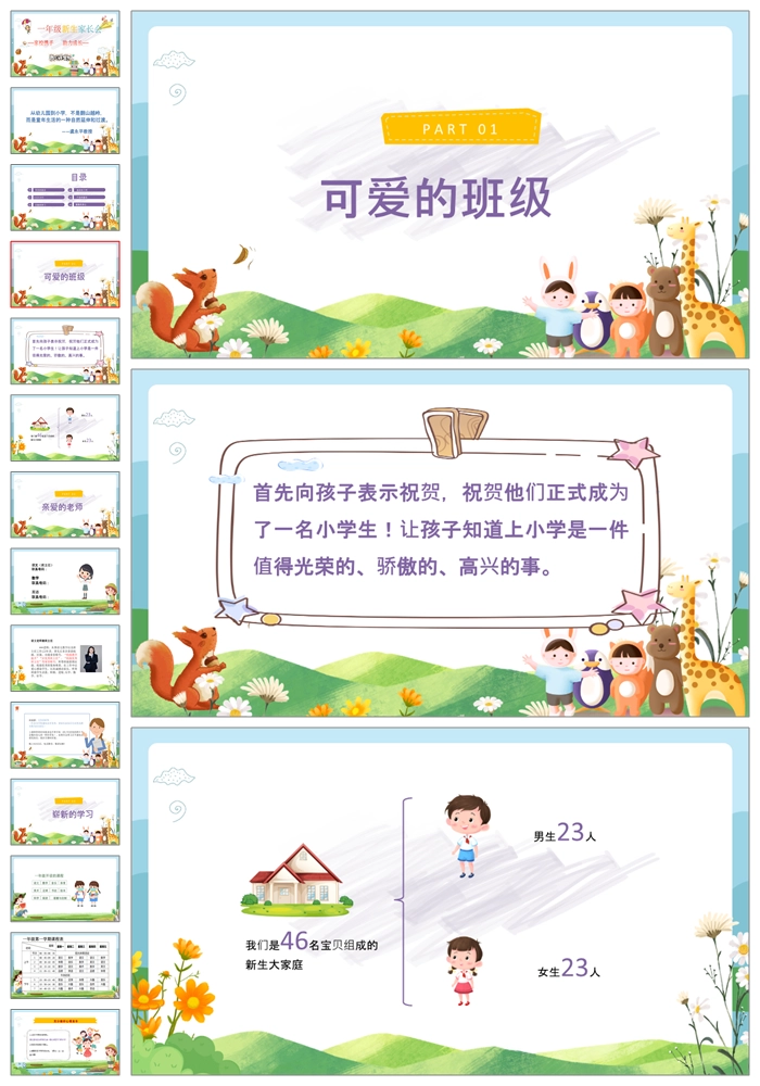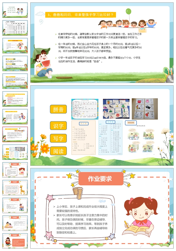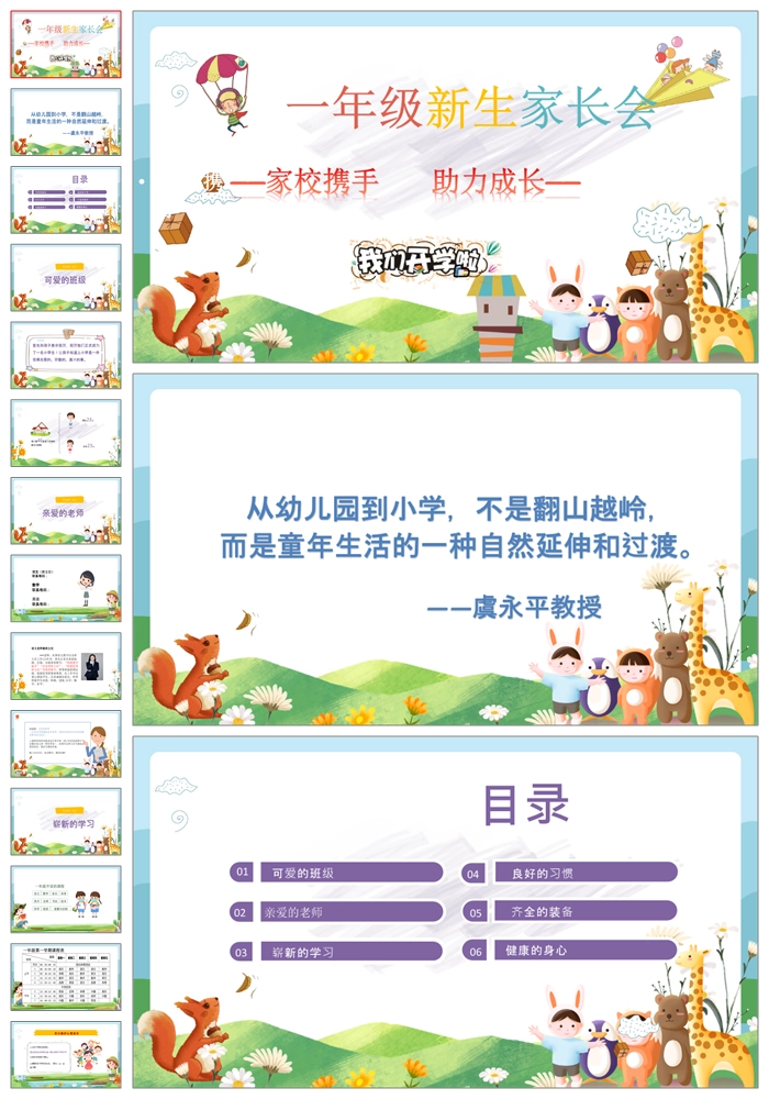【8466】【一年级家长会】一年级新生入学家长会《家校携手助力成长》PPT课件+发言稿