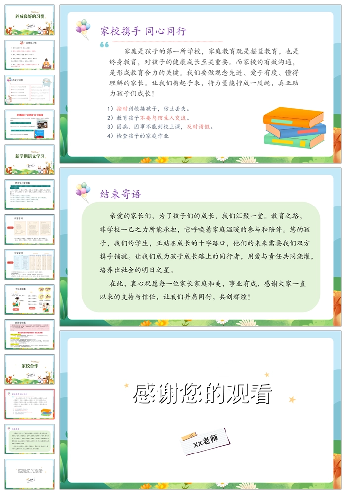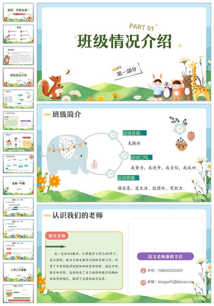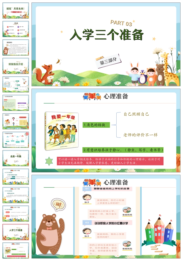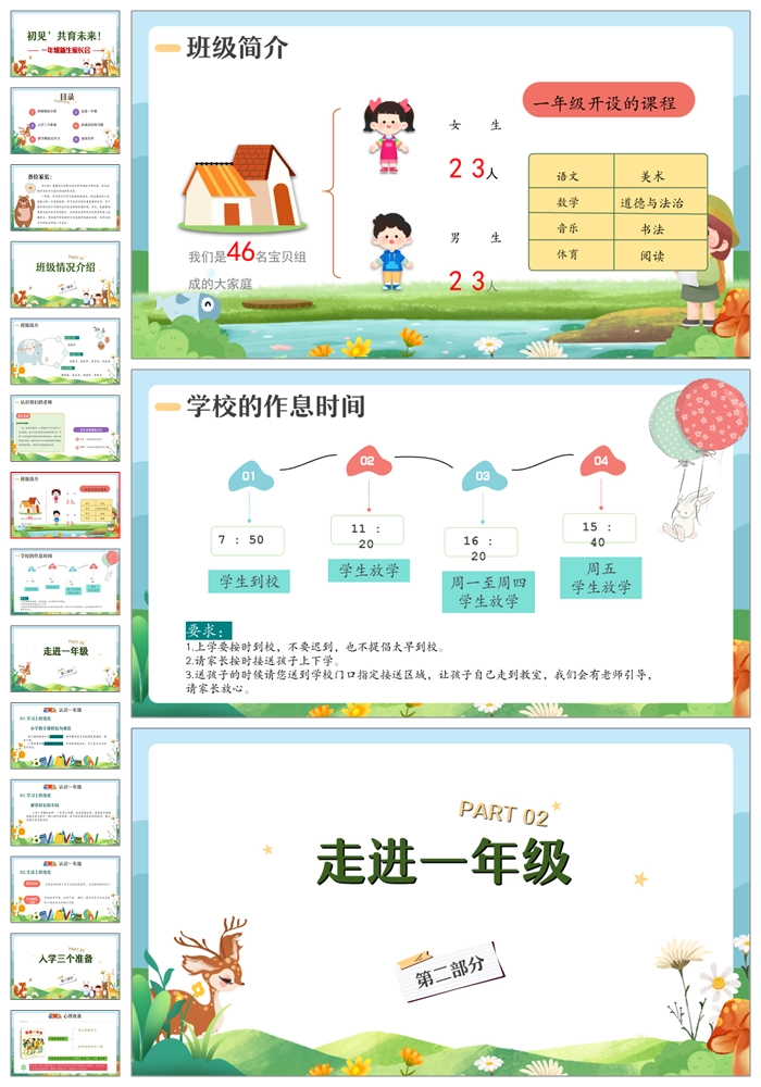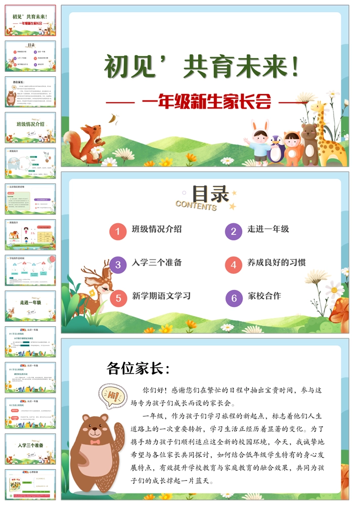 【8467】【一年级家长会】一年级新生家长会《初见共育未来》PPT课件+发言稿
