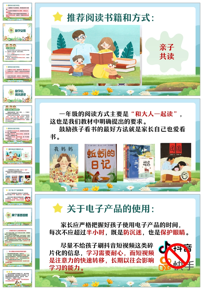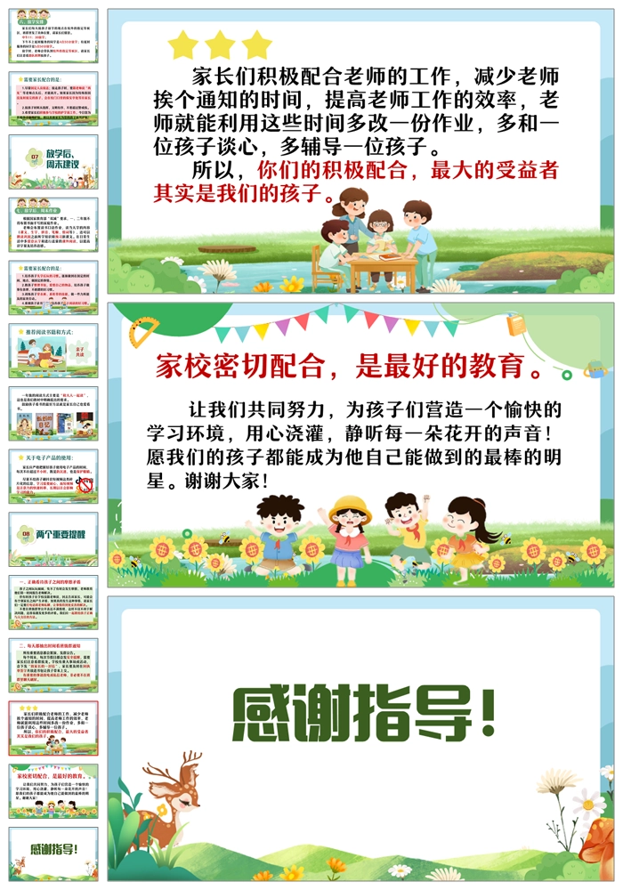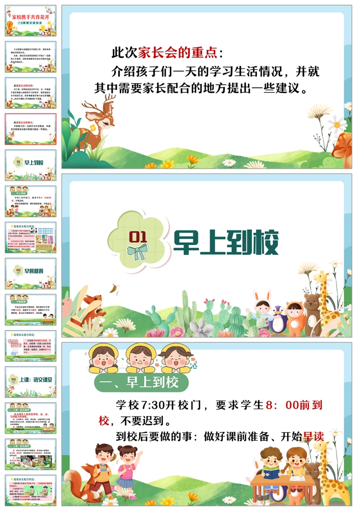【8469】【一年级家长会】一年级新生入学家长会《家校携手共育花开》PPT课件+发言稿