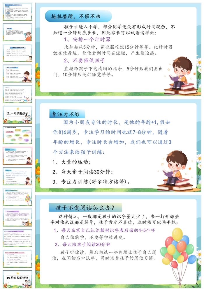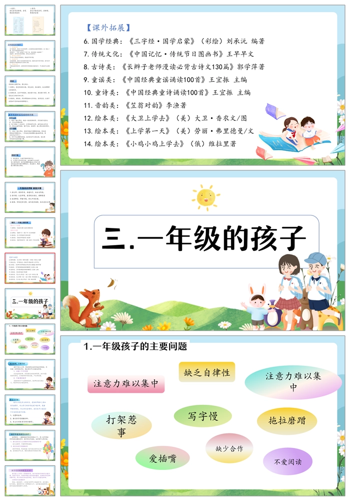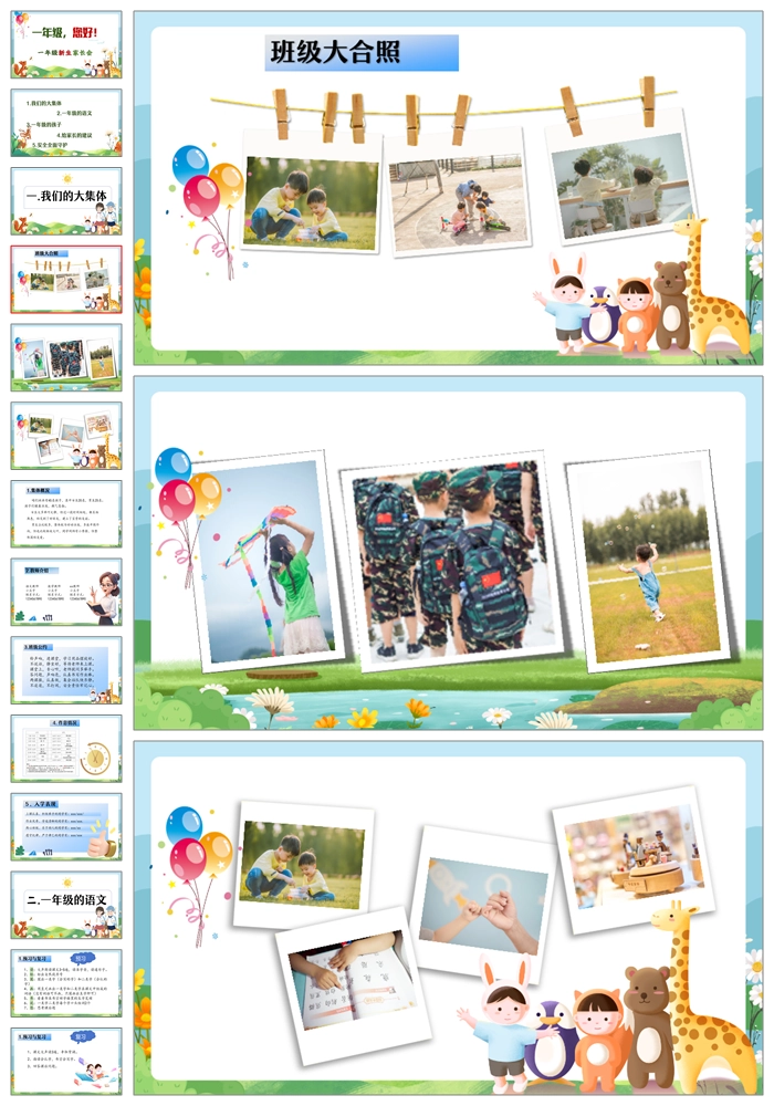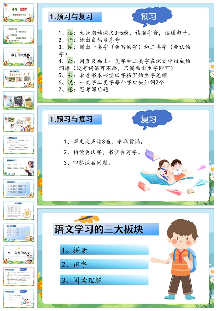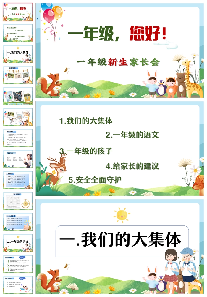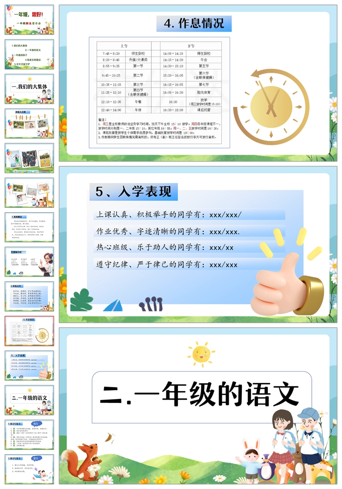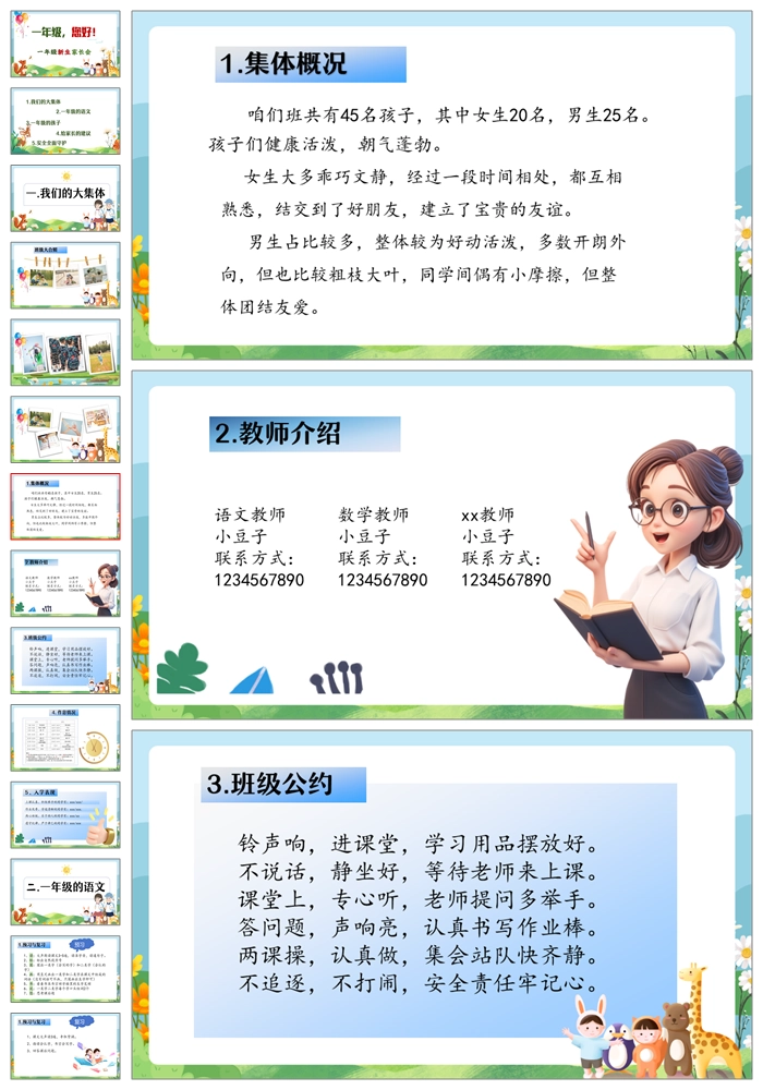 【8470】【一年级家长会】一年级新生家长会《一年级你好》PPT课件+发言稿