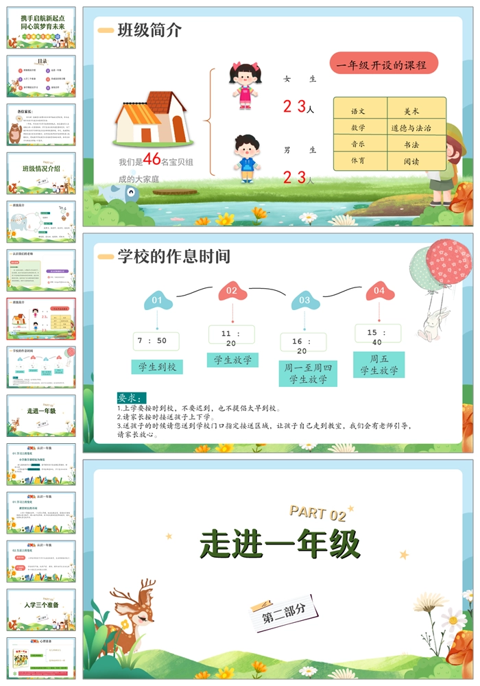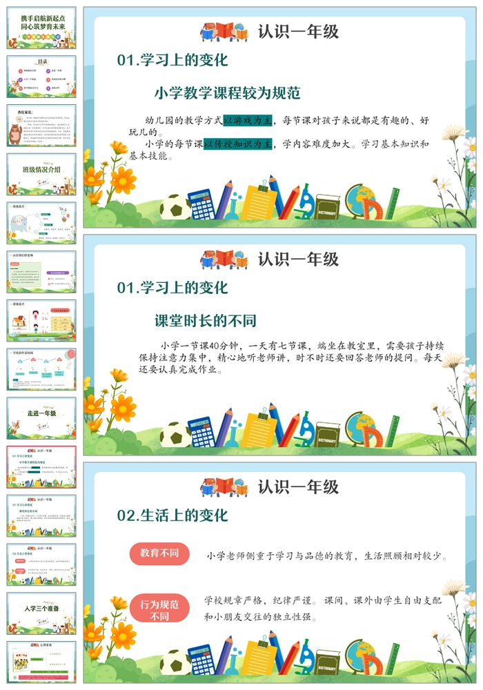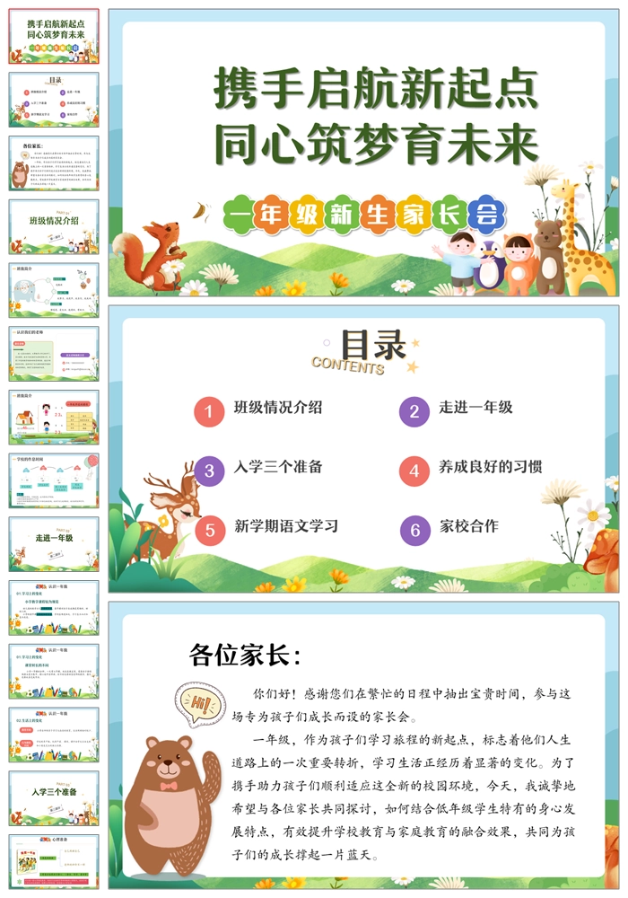 【8488】【一年级家长会】一年级新生家长会《携手启航新起点》PPT课件+发言稿