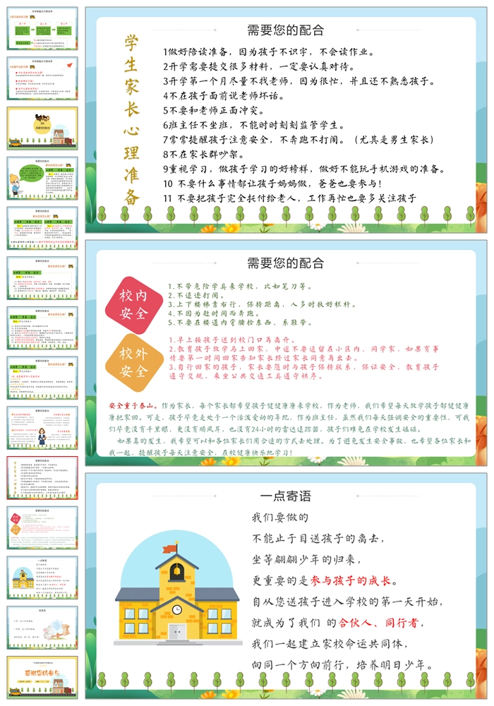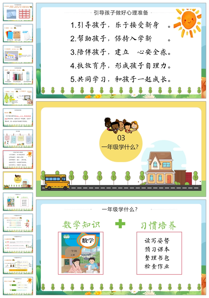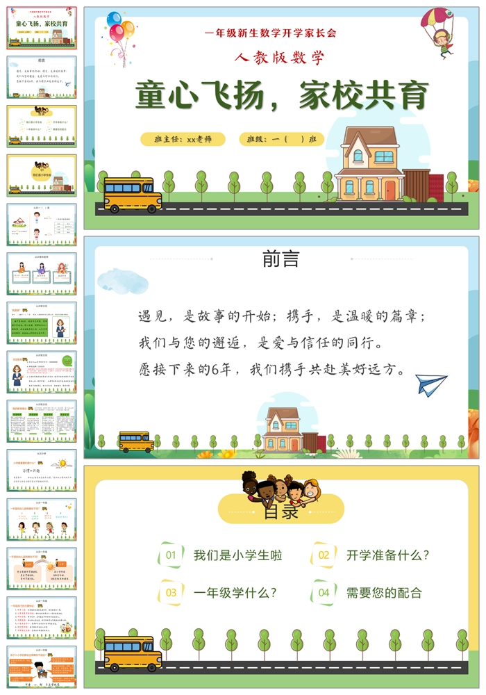 首页 一年级家长会 【8497】一年级上学期人教版数学《小学我们来啦》一年级秋季开学第一课家长会ppt课件+发言稿