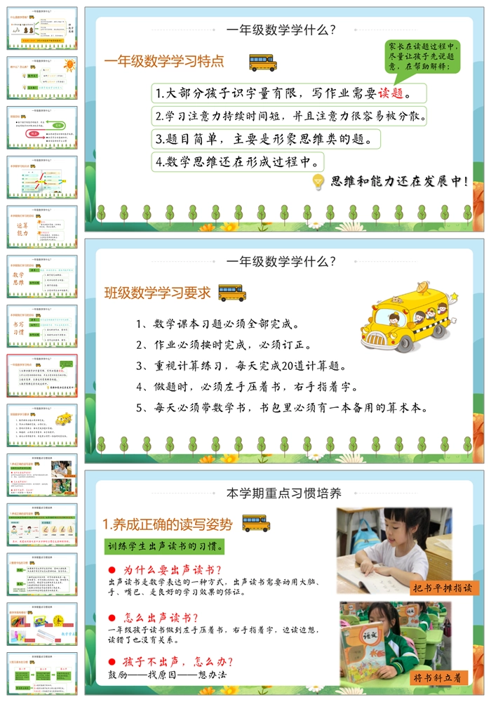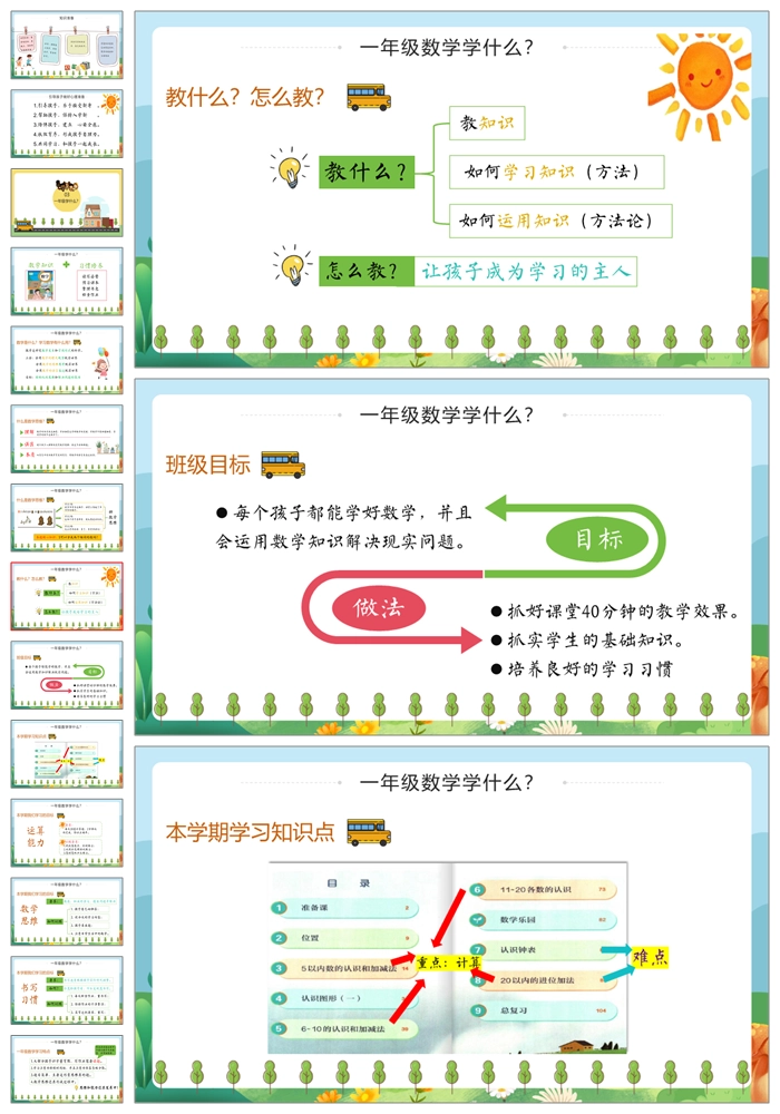 【8497】一年级上学期人教版数学《小学我们来啦》一年级秋季开学第一课家长会ppt课件+发言稿
