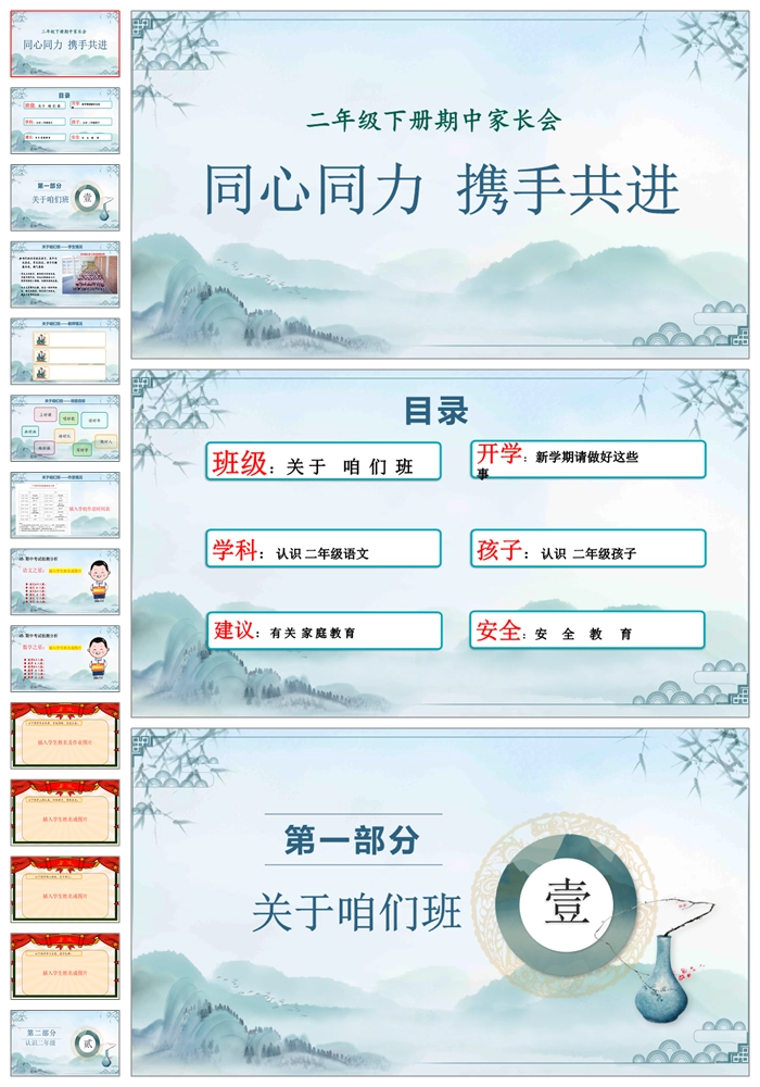 首页 二年级家长会 【8011】【二年级家长会】《同心同力携手共进》二年级期中家长会PPT(课件+讲稿)