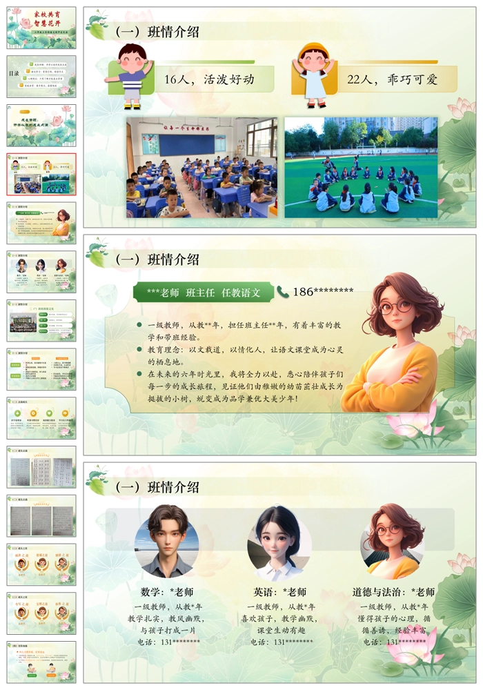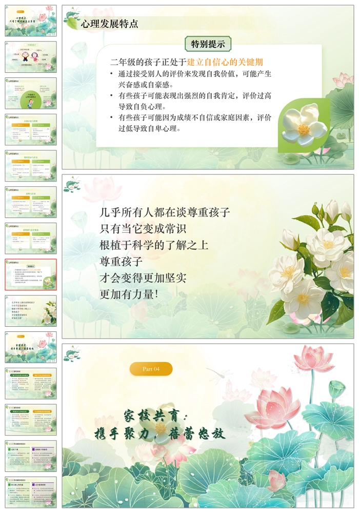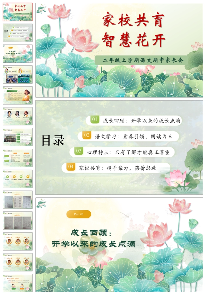 【8199】【二年级家长会】《家校共育智慧花开》二年级上学期语文期中家长会PPT(课件+讲稿)