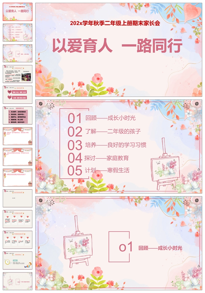 【8204】【二年级家长会】《以爱育人一路同行》二年级上学期期末家长会PPT(课件+讲稿)