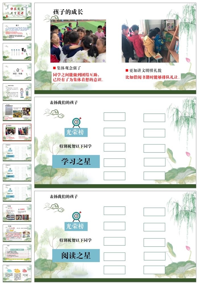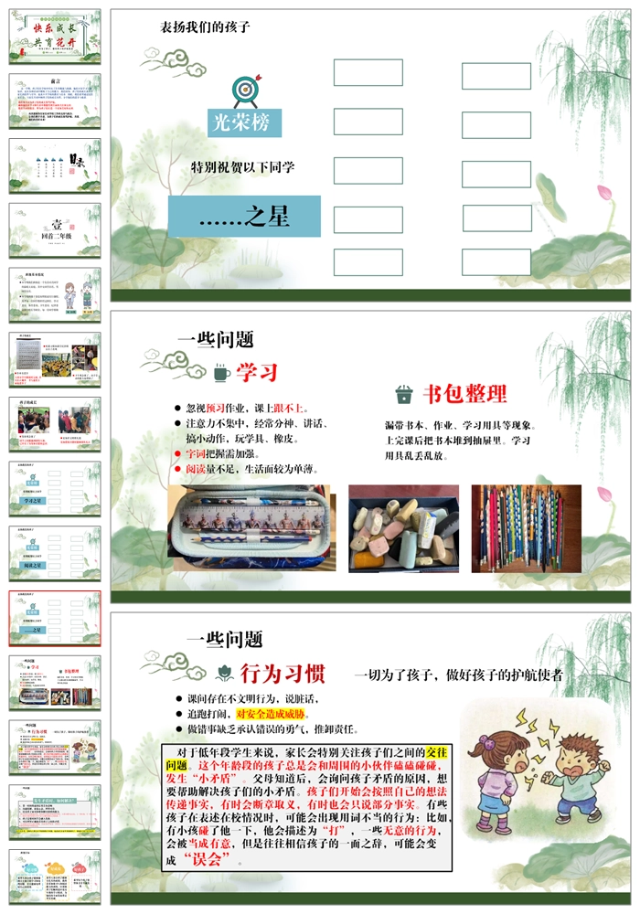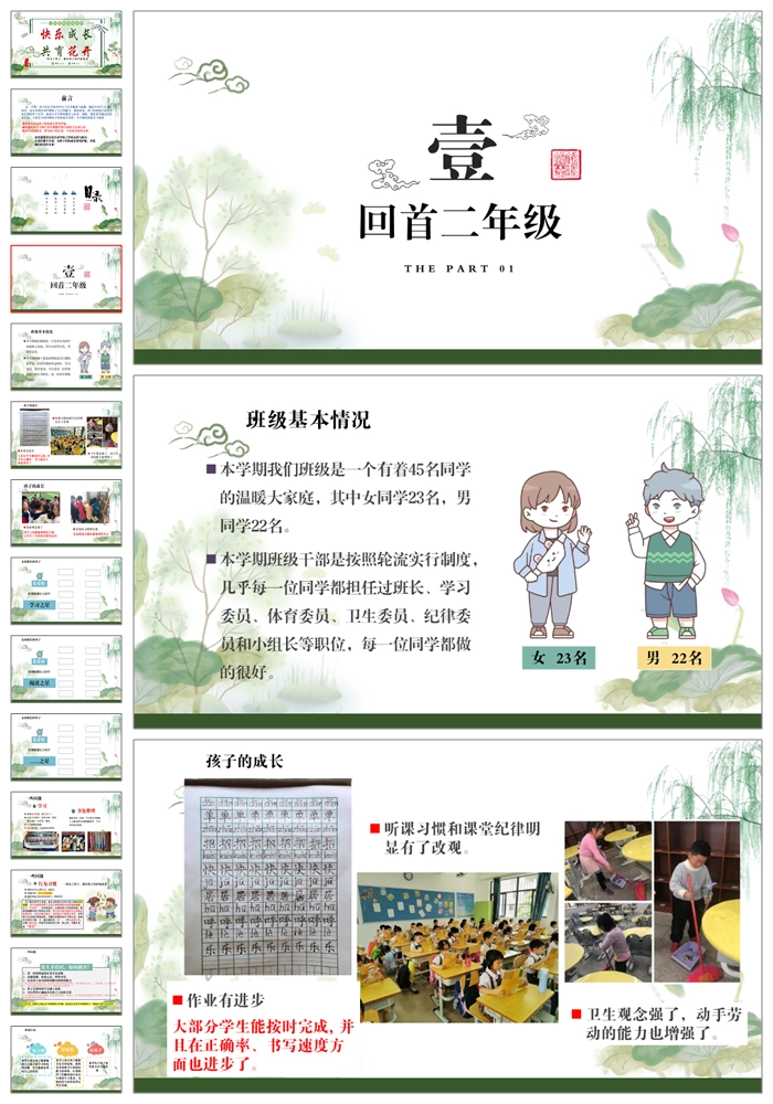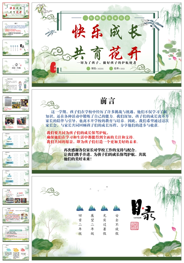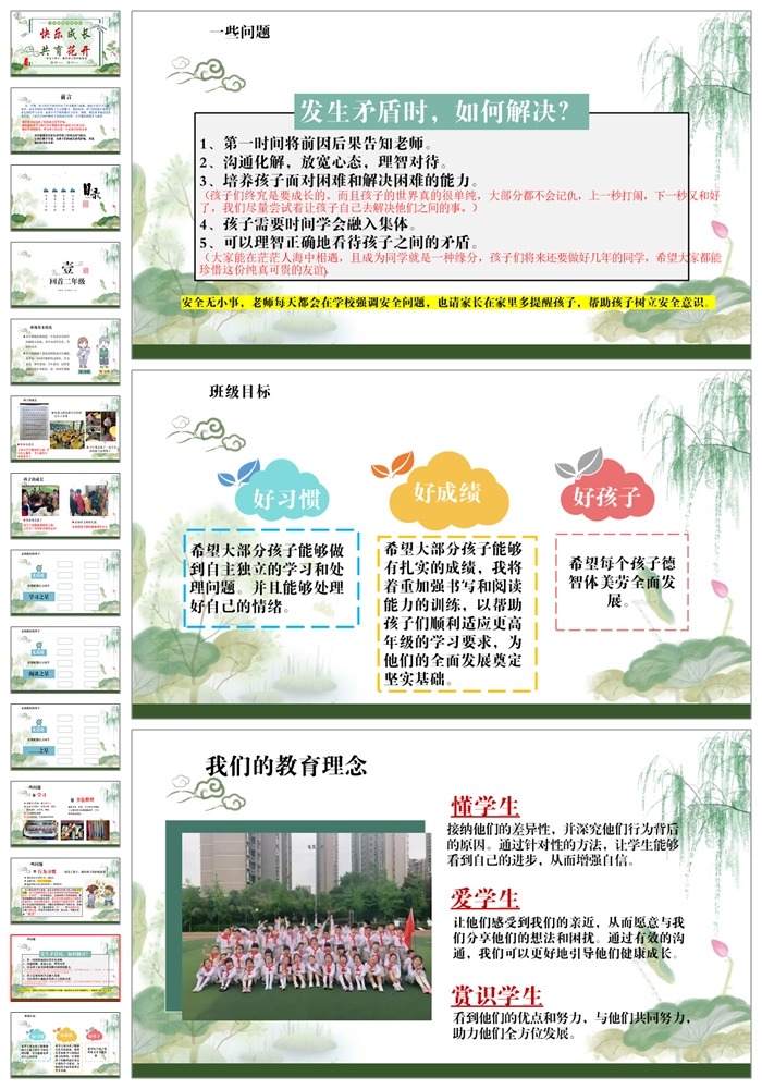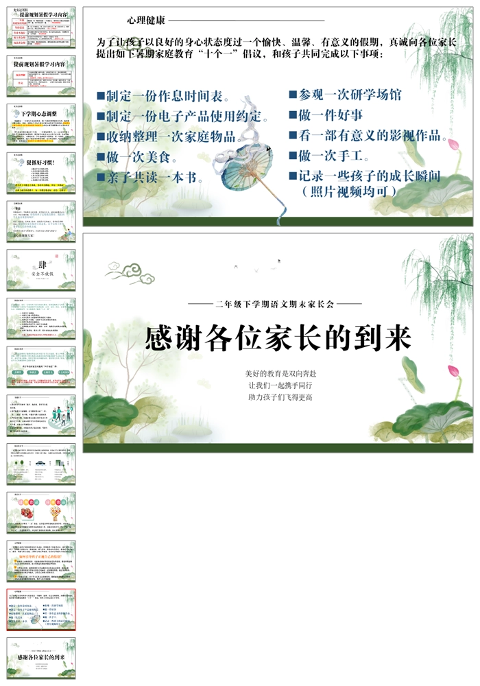 【8369】【二年级家长会】《快乐成长共育花开》二年级下学期期末家长会PPT(课件+发言稿)