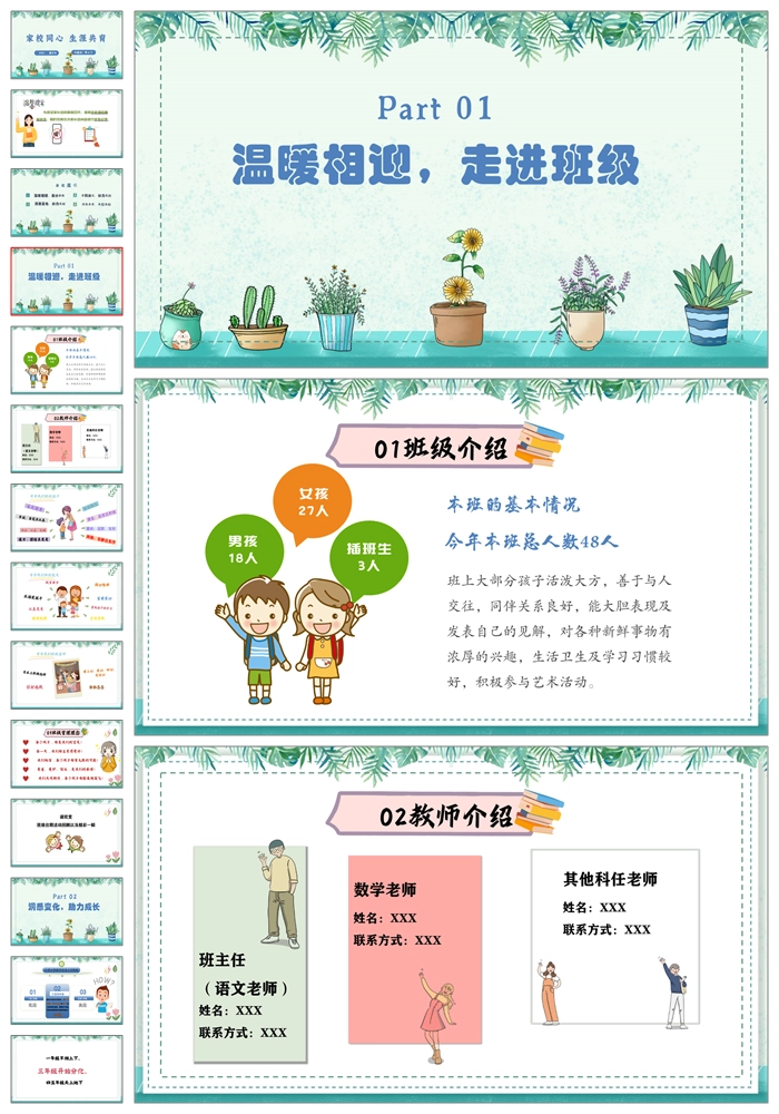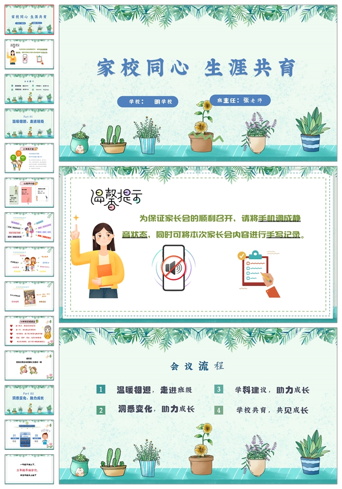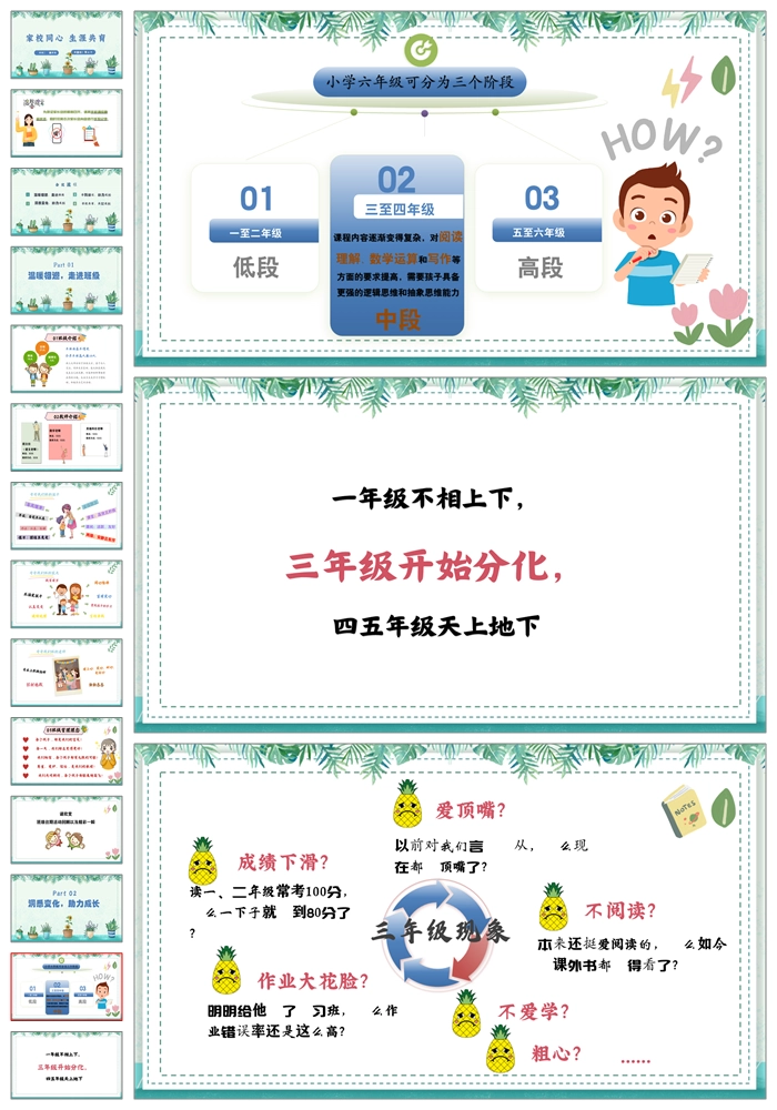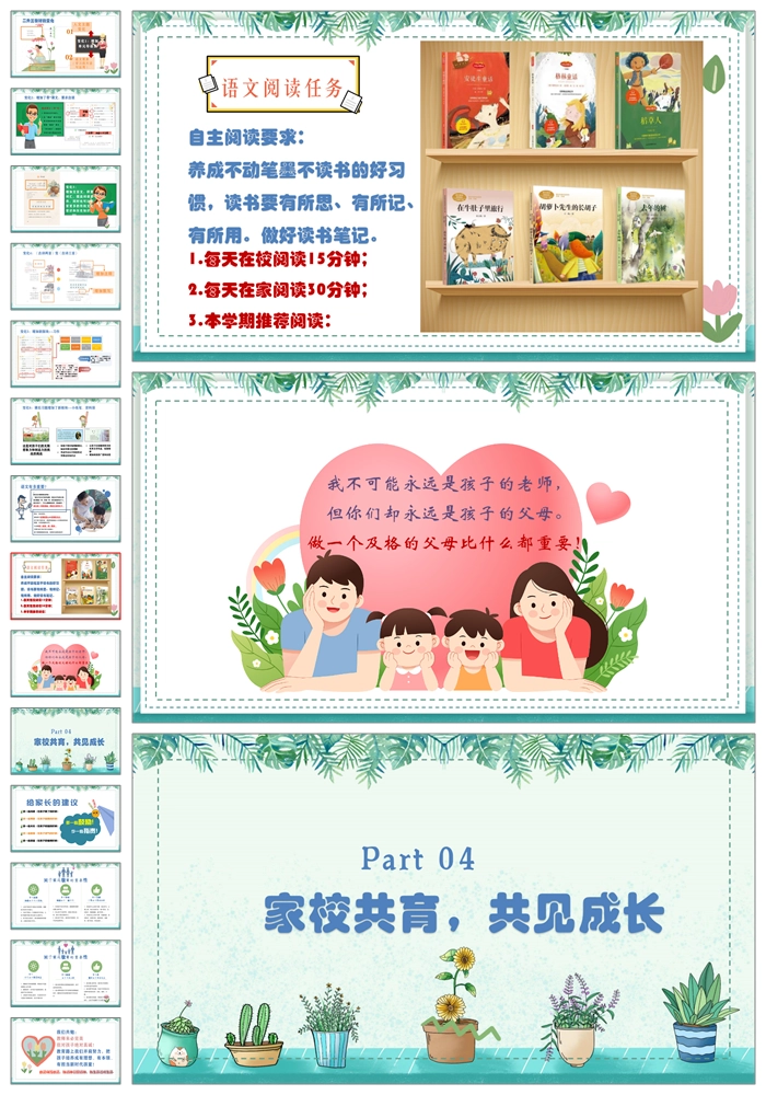 【5111】三上语文期中家长会《家校同心生涯共育》三年级期中家长会ppt课件+发言稿