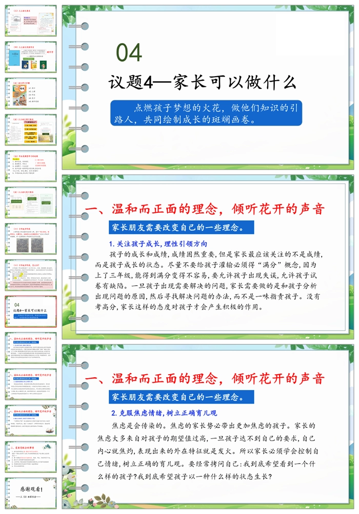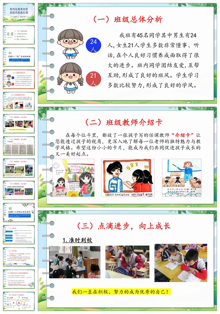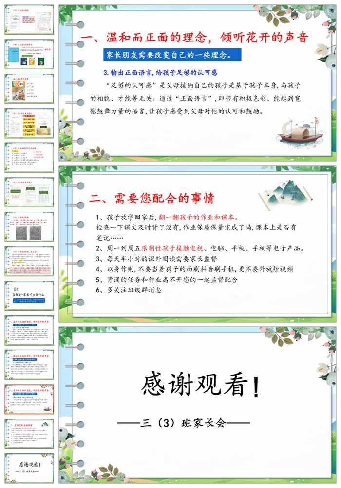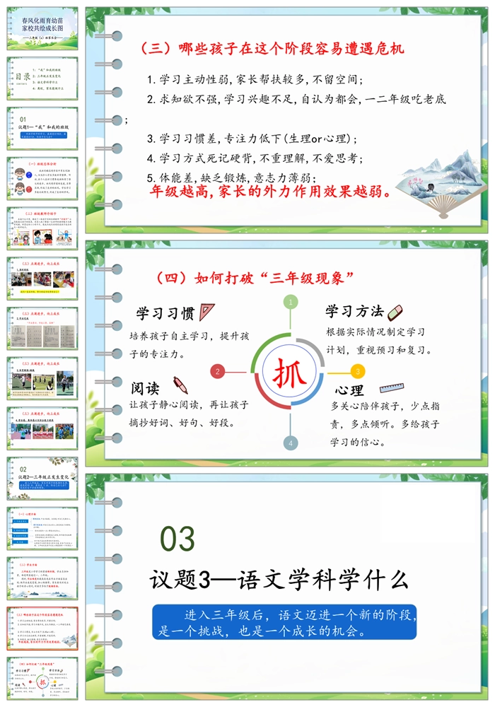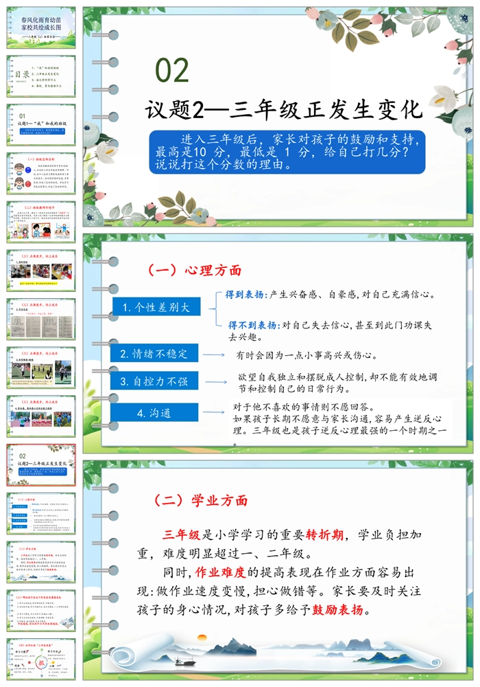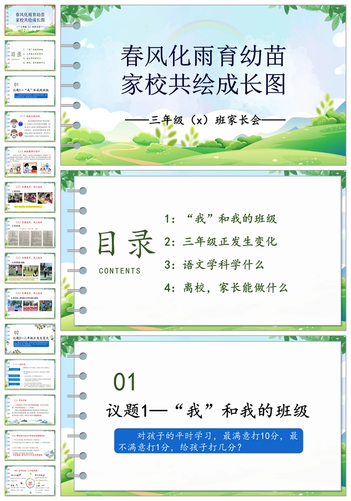 【8188】【三年级家长会】《春风化雨育幼苗 家校共绘成长图》三年级家长会PPT(课件+讲稿)