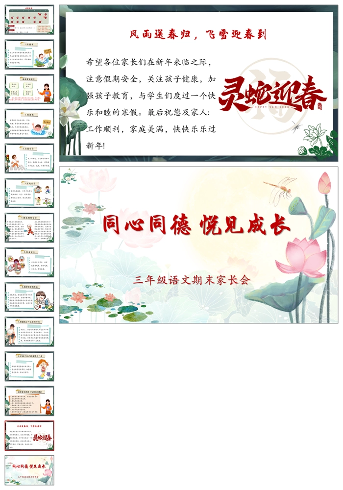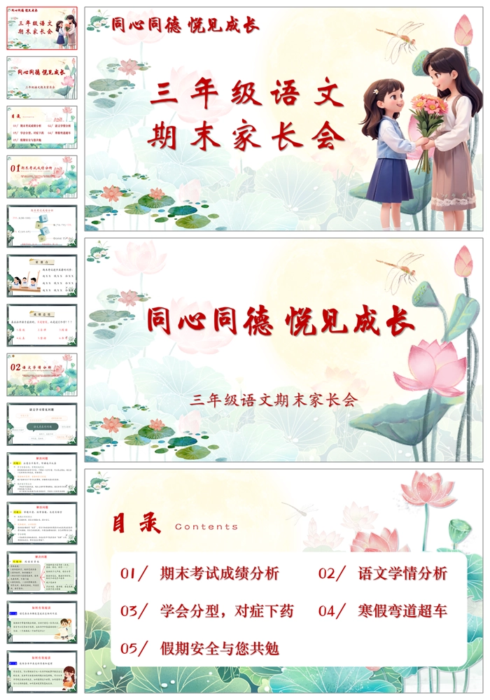 【8234】【三年级家长会】《同心同德悦见成长》三年级上册语文期末家长会PPT(课件+讲稿+暖场视频)