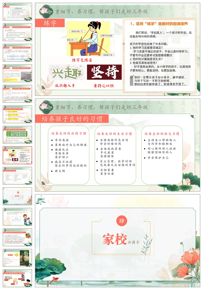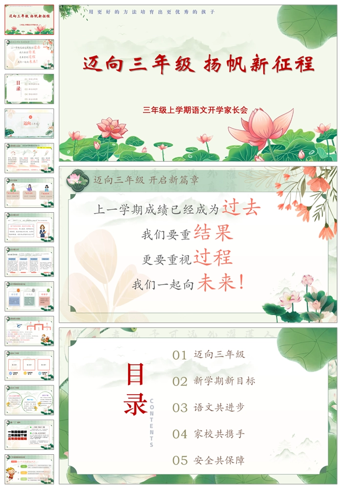 【8263】【三年级家长会】《迈向三年级扬帆新征程》三年级上学期开学家长会PPT课件(课件+视频+发言稿)