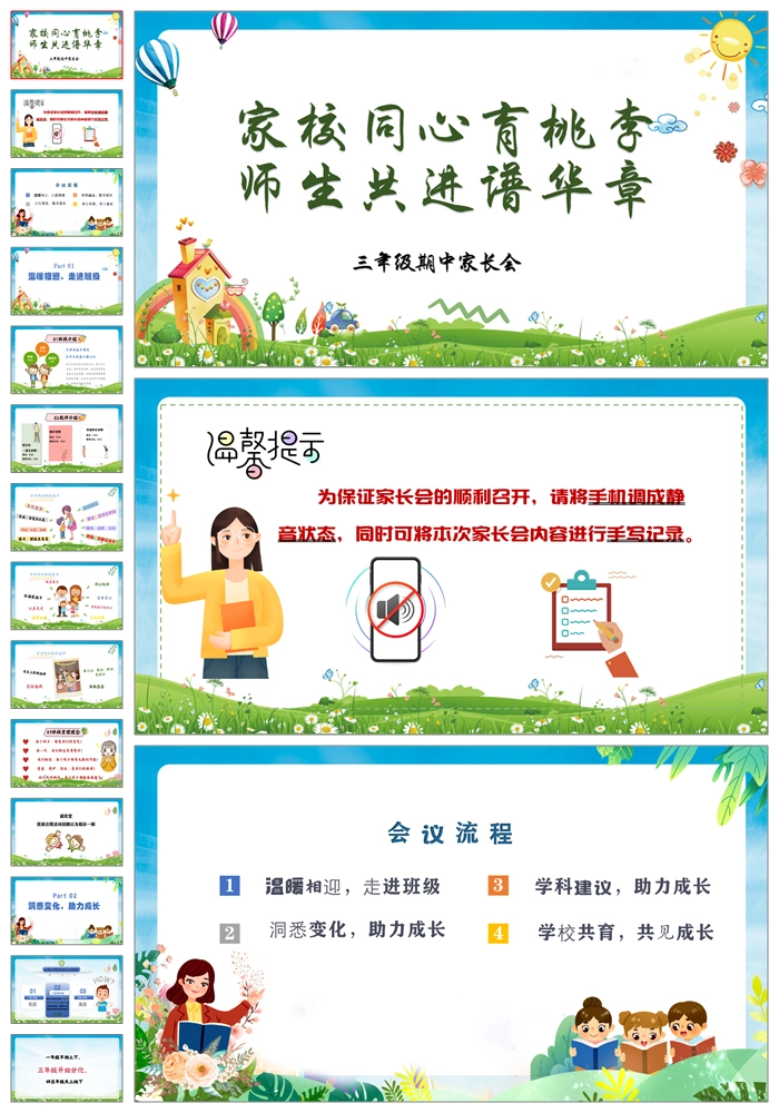 【8283】【三年级家长会】《家校同心育桃李师生共进谱华章》小学三年级期中家长会PPT(课件+发言稿+暖场视频)