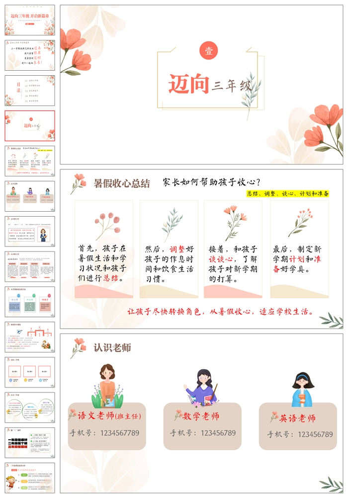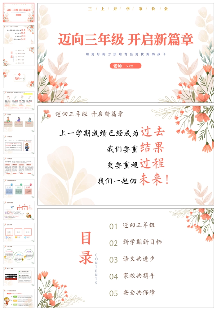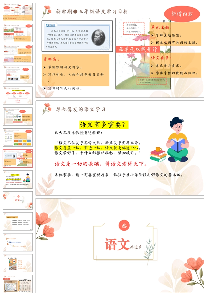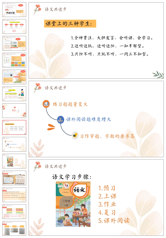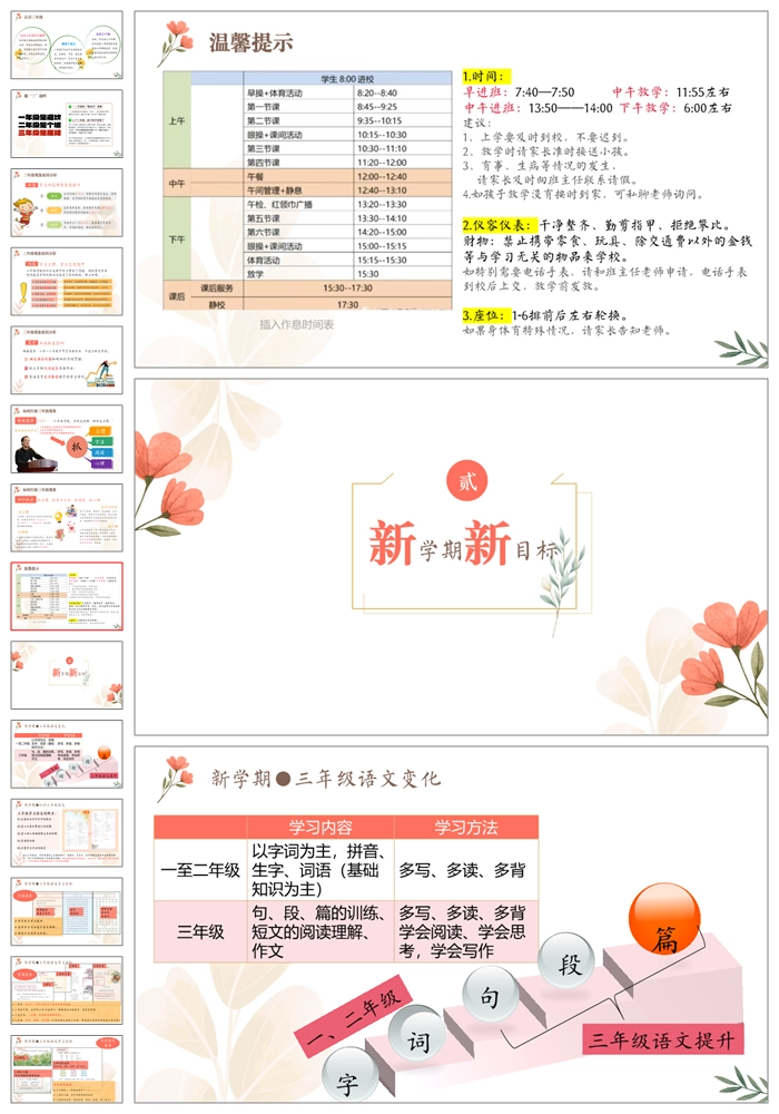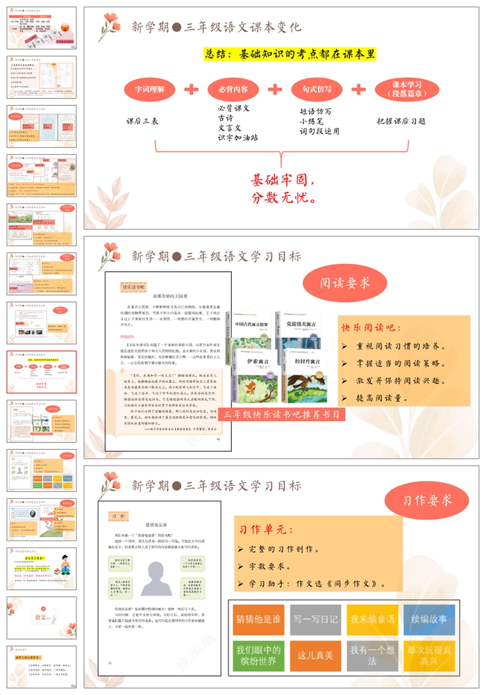 【8386】【三上家长会】【语文】《迈向三年级 开启新篇章》三年级上学期语文开学家长会ppt(课件+发言稿)