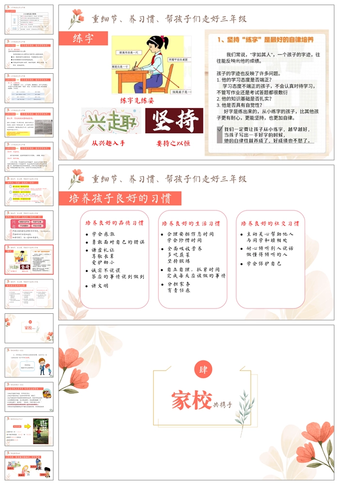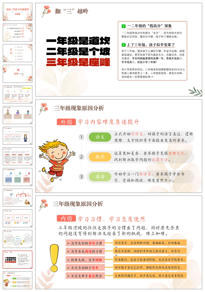 首页 三年级家长会 【8386】【三上家长会】【语文】《迈向三年级 开启新篇章》三年级上学期语文开学家长会ppt(课件+发言稿)