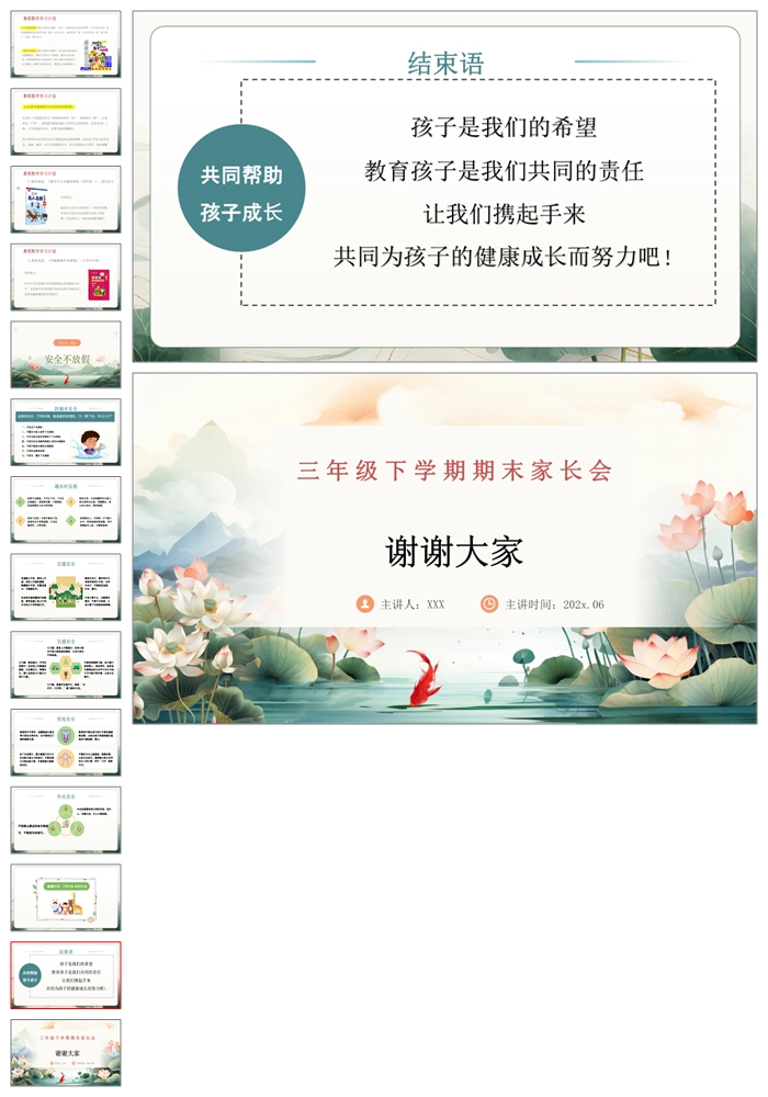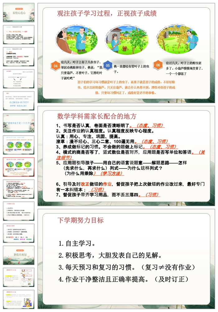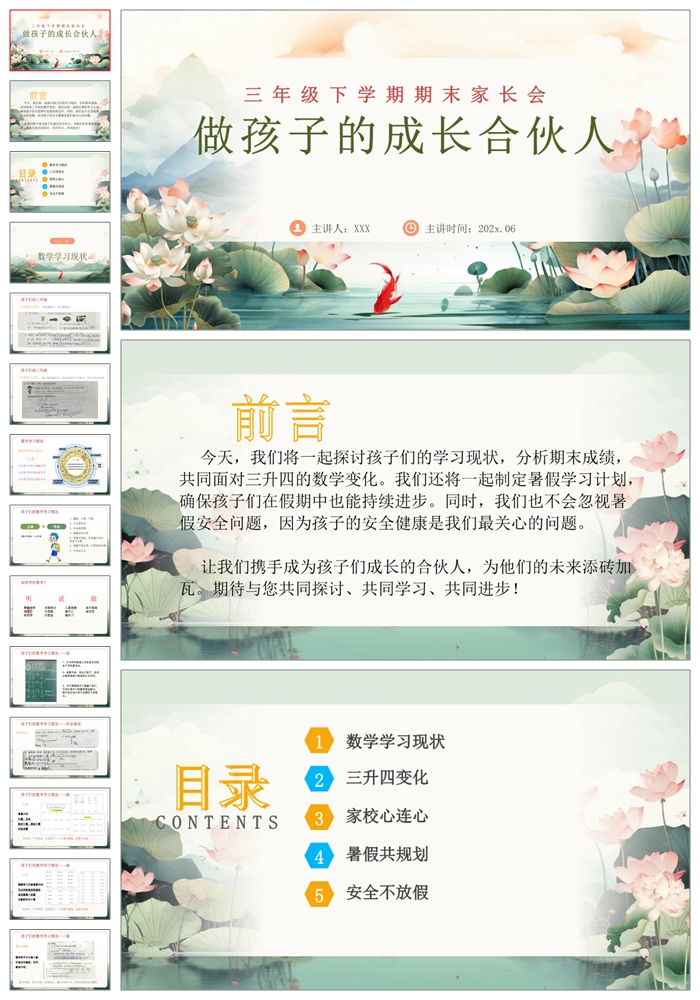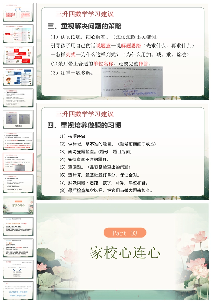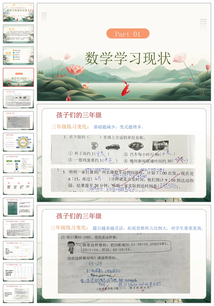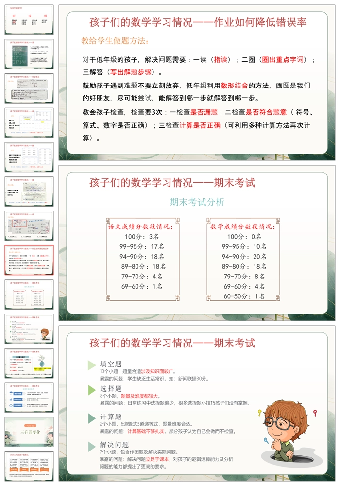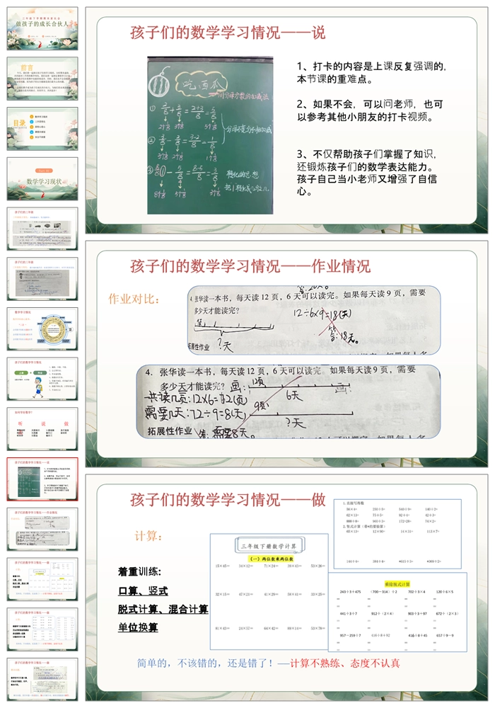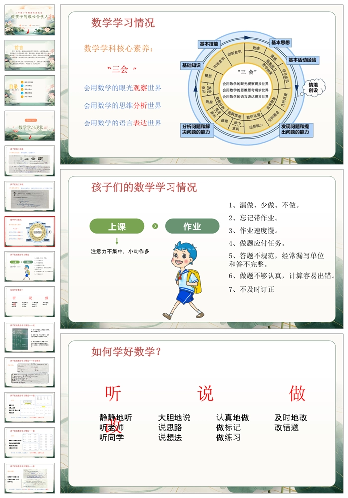 【8388】【三下家长会】【数学】《做孩子的成长合伙人》三年级下学期数学期末家长会(北师大版)ppt(课件+发言稿)