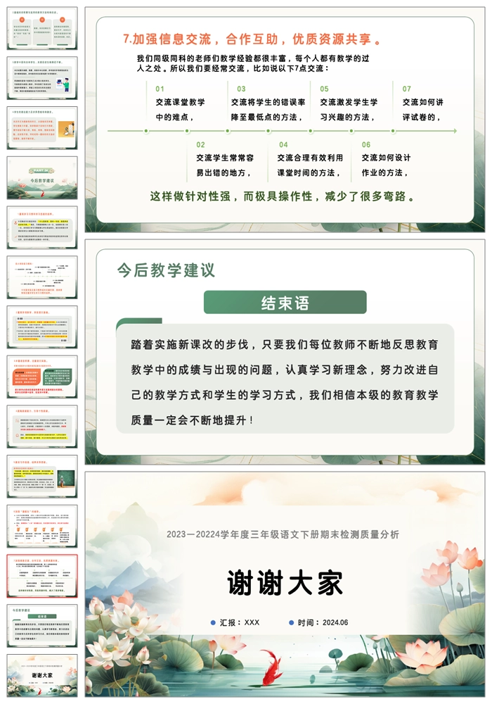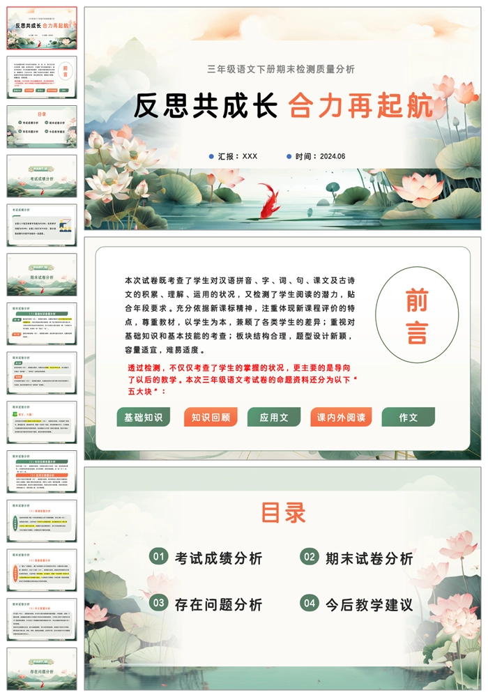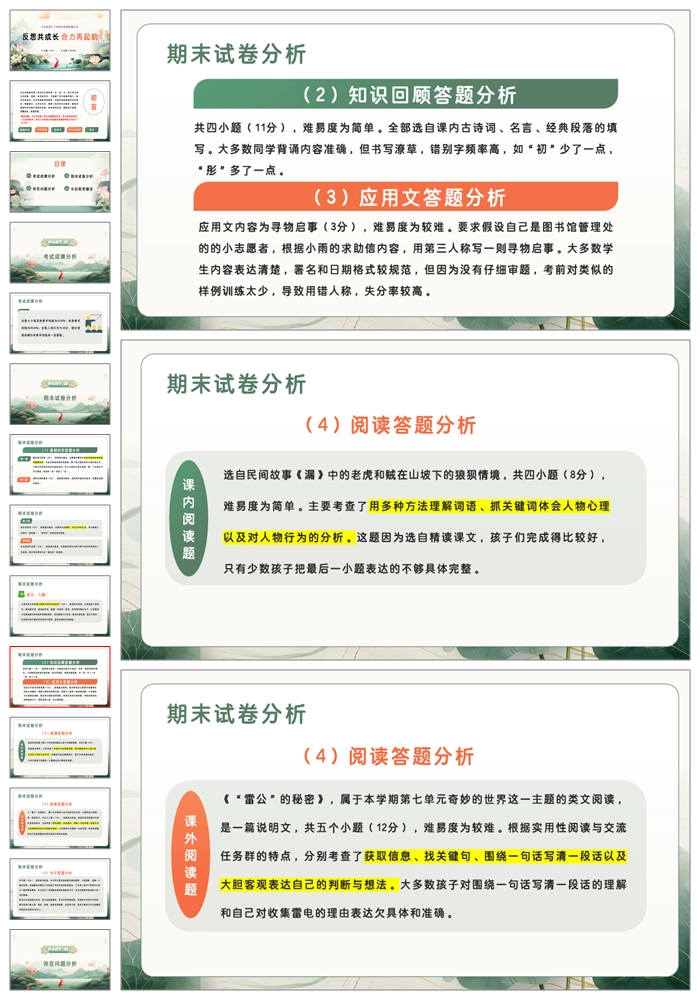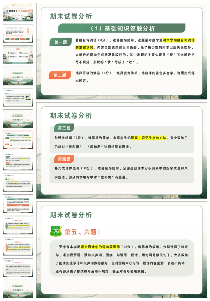 【8389】【三下质量分析】【语文】《反思共成长 合力再起航》三年级下学期语文期末质量分析ppt(课件+发言稿)