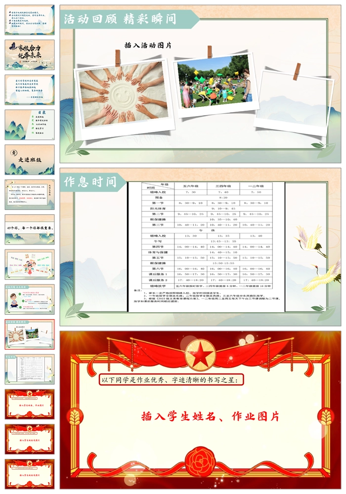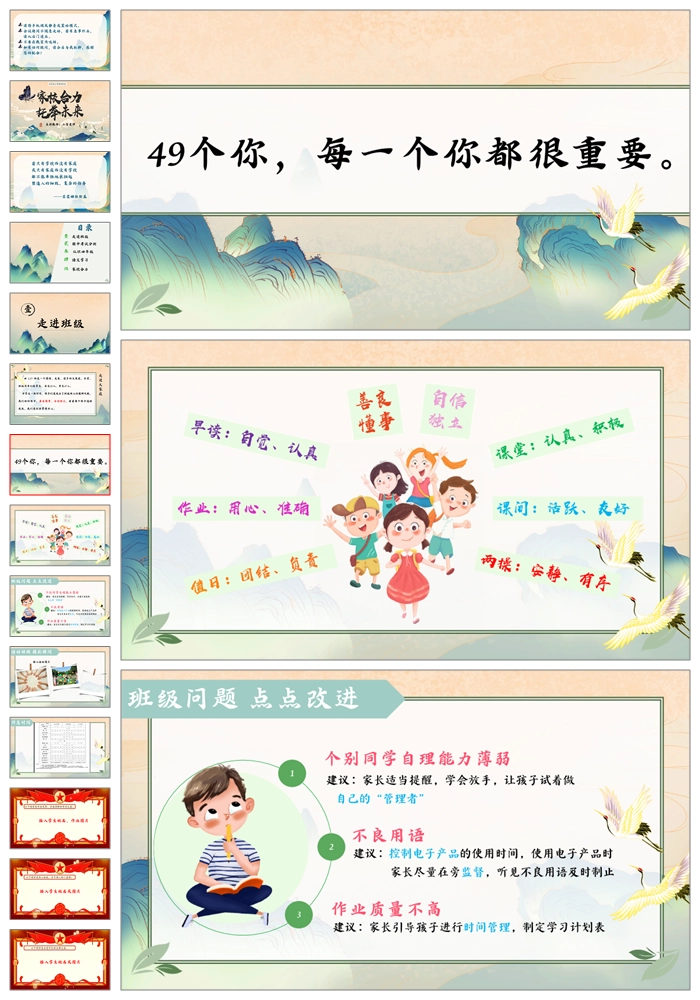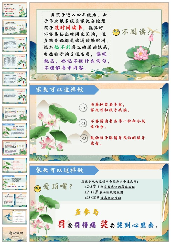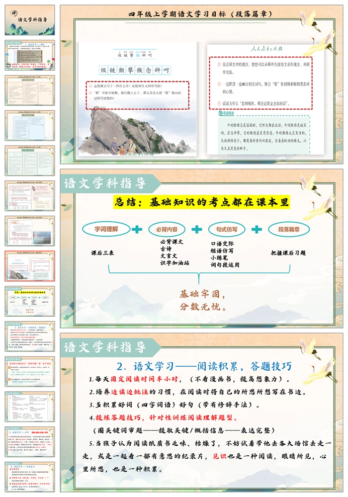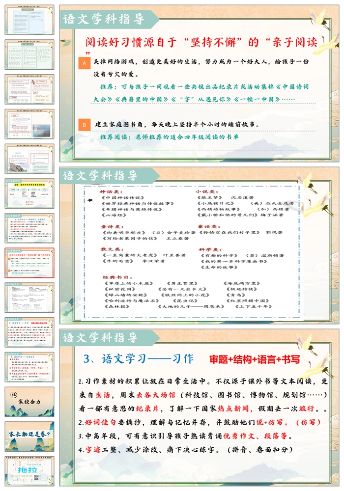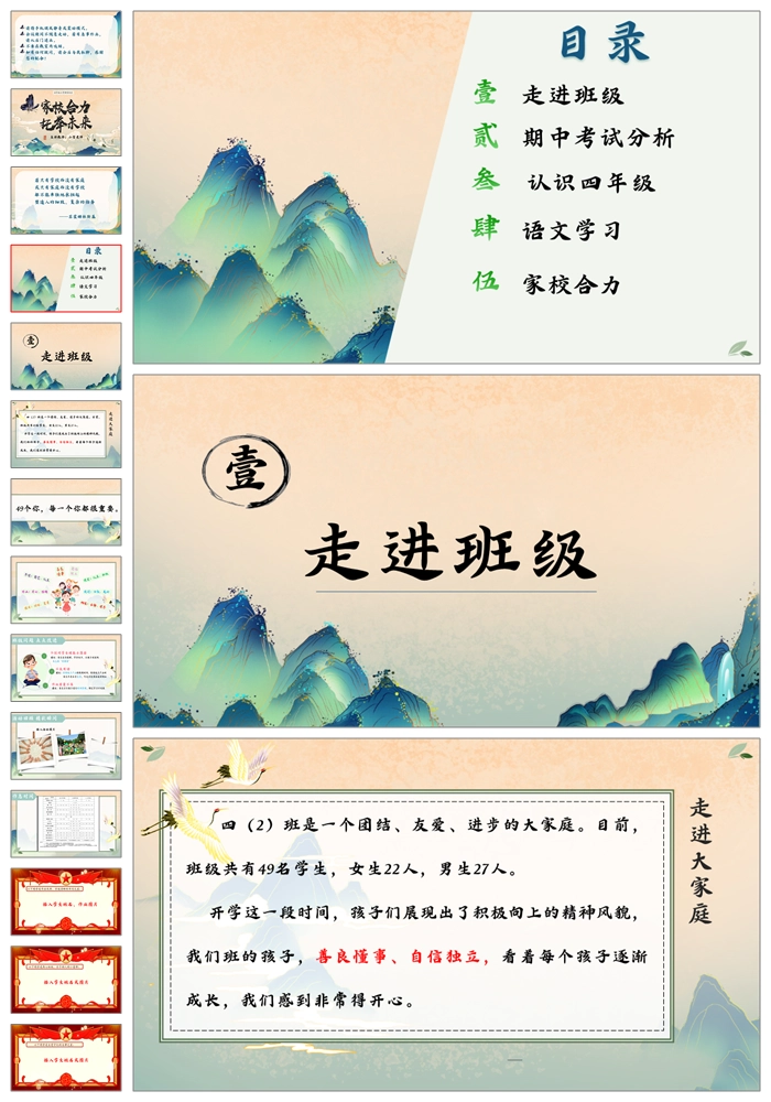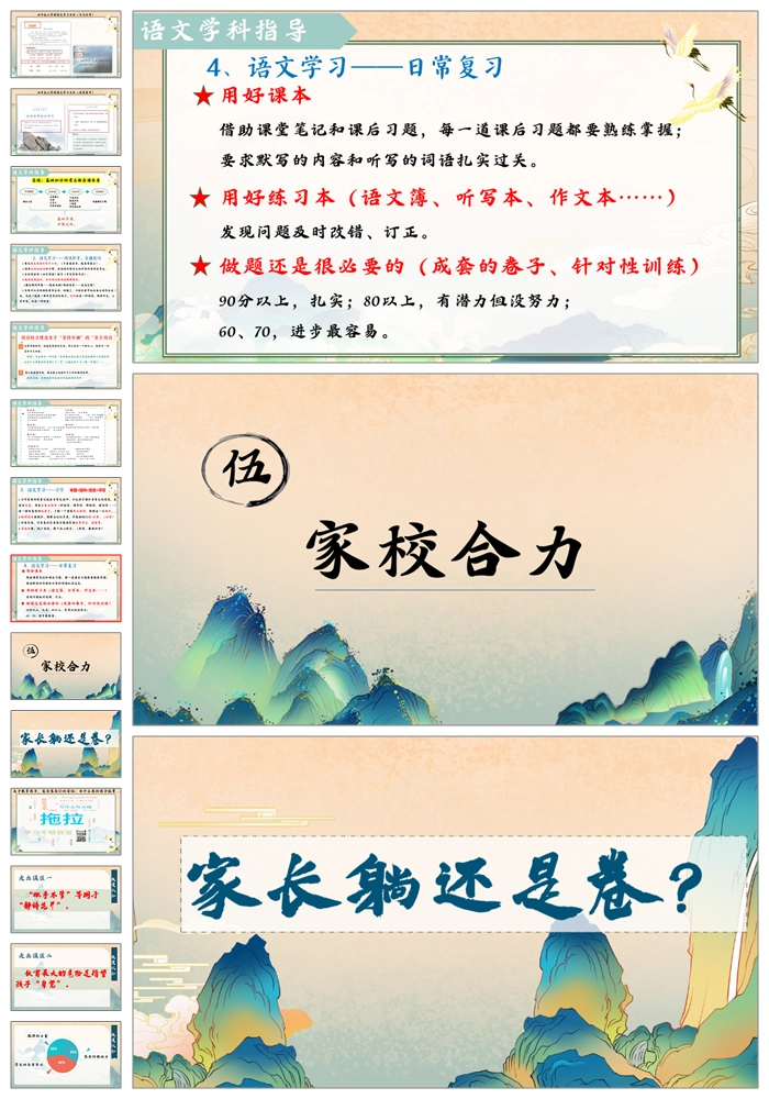 【5077】四上语文期中家长会《家校合力》四年级上学期语文期中家长会PPT课件+发言稿+暖场视频