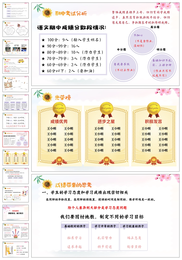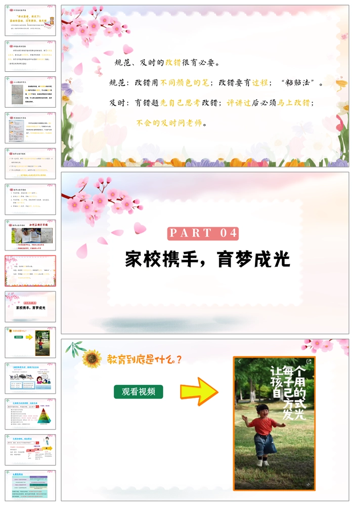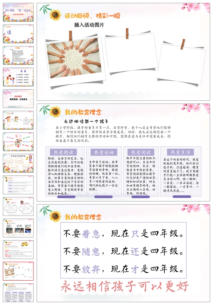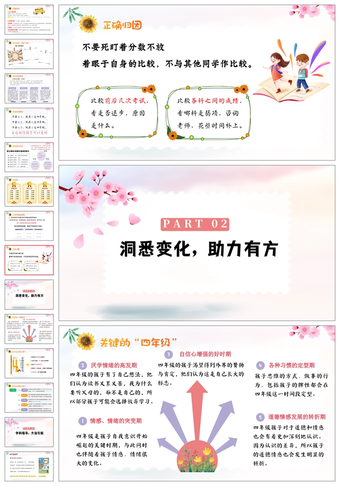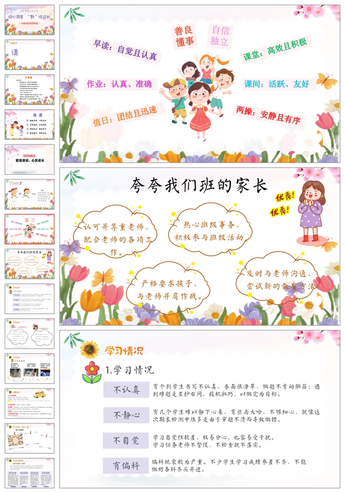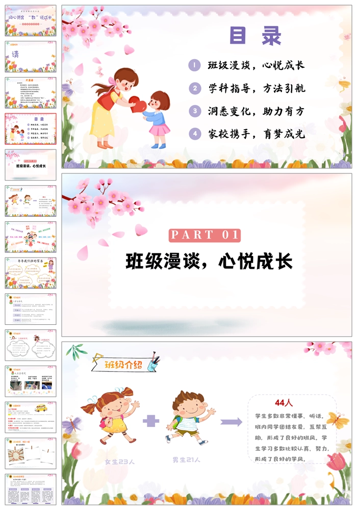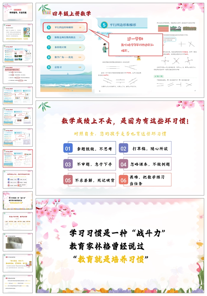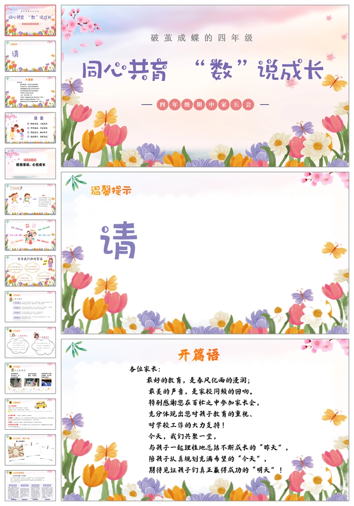 【5109】四年级数学期中家长会《并肩携手共育花开》四上期中数学家长会ppt课件+发言稿