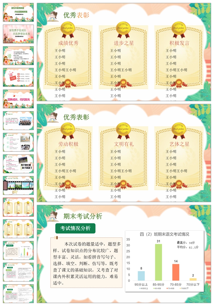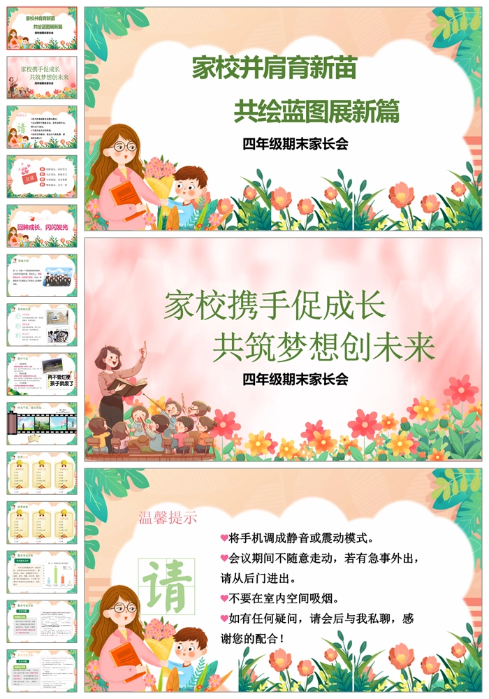 【8092】【四下家长会】《家校并肩育新苗,共绘蓝图展新篇》四年级语文期末家长会PPT(课件+发言稿)