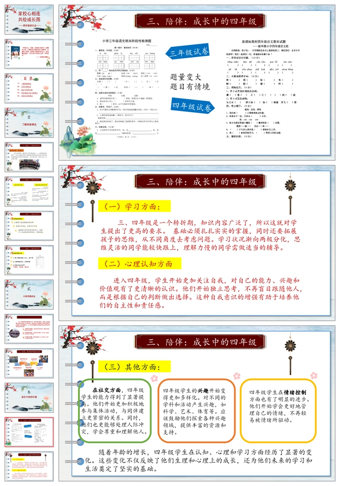 【8182】【四年级家长会】《家校心相连共绘成长图》四年级下学期家长会PPT(课件+讲稿)
