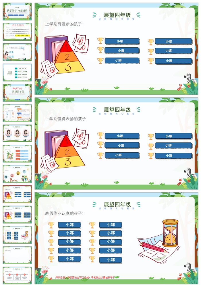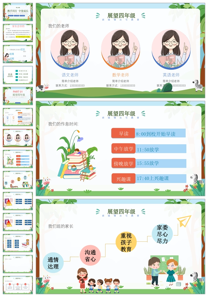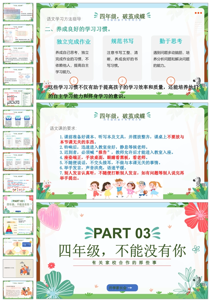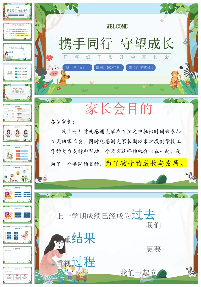 【8303】【四年级家长会】四年级下学期语文开学家长会《携手同行守望成长》PPT(课件+发言稿+暖场视频)