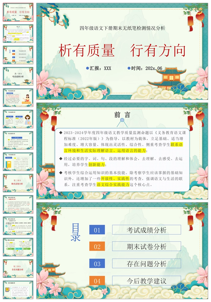 【8404】【四下】【语文】【析有质量 行有方向】四年级语文期末质量分析PPT(课件+发言稿)