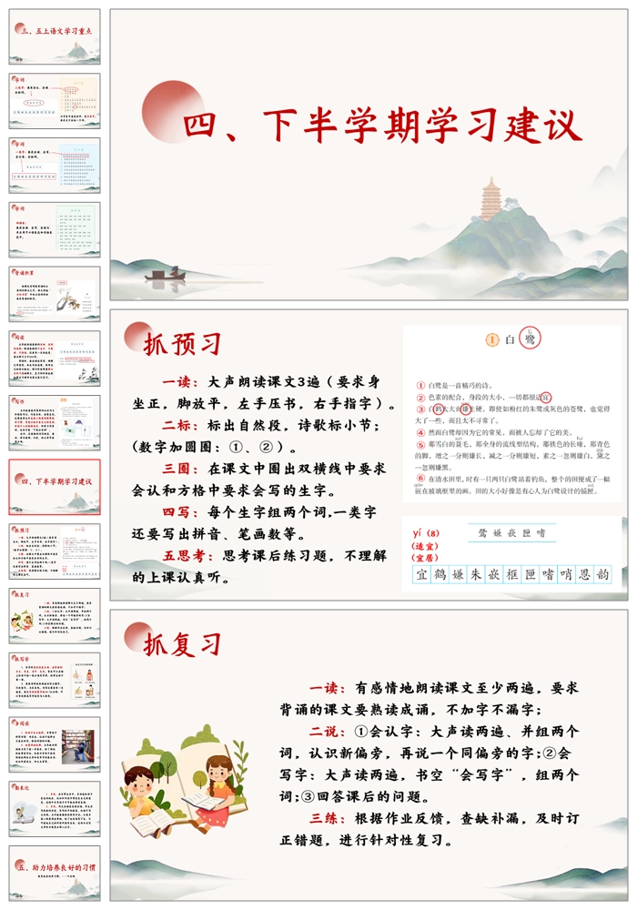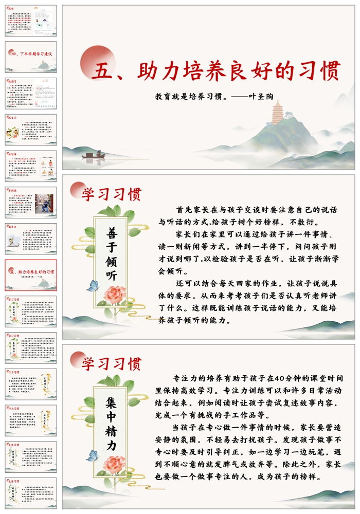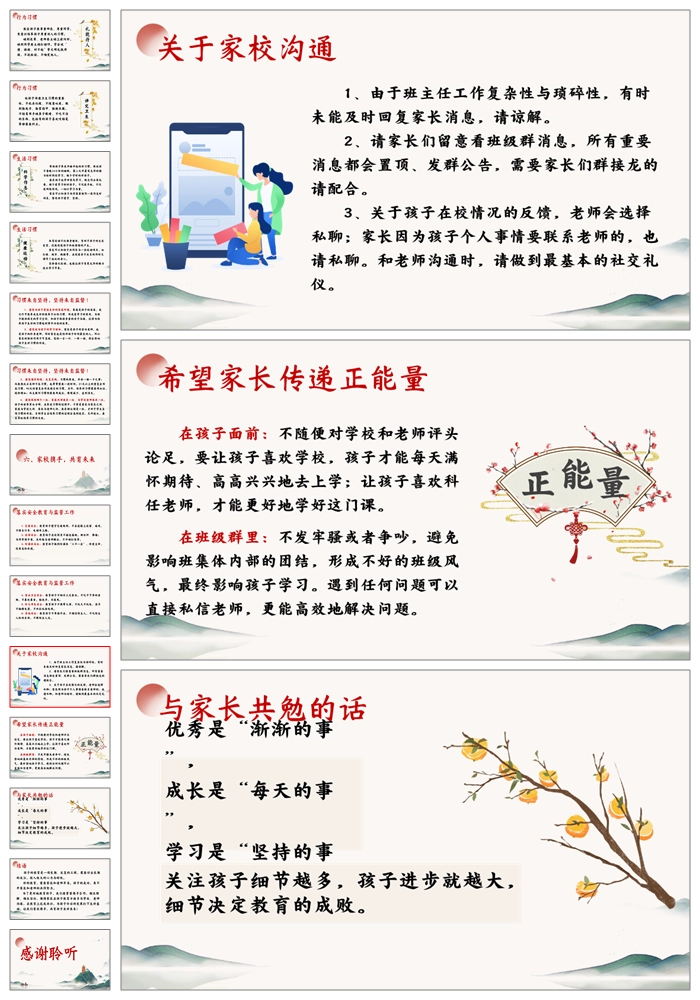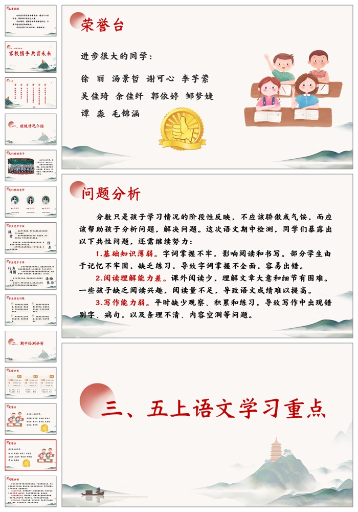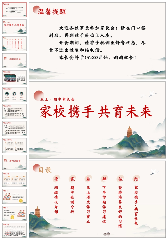 【5108】五上语文期中家长会《家校携手共育未来》五年级上学期期中家长会ppt课件+发言稿+暖场视频
