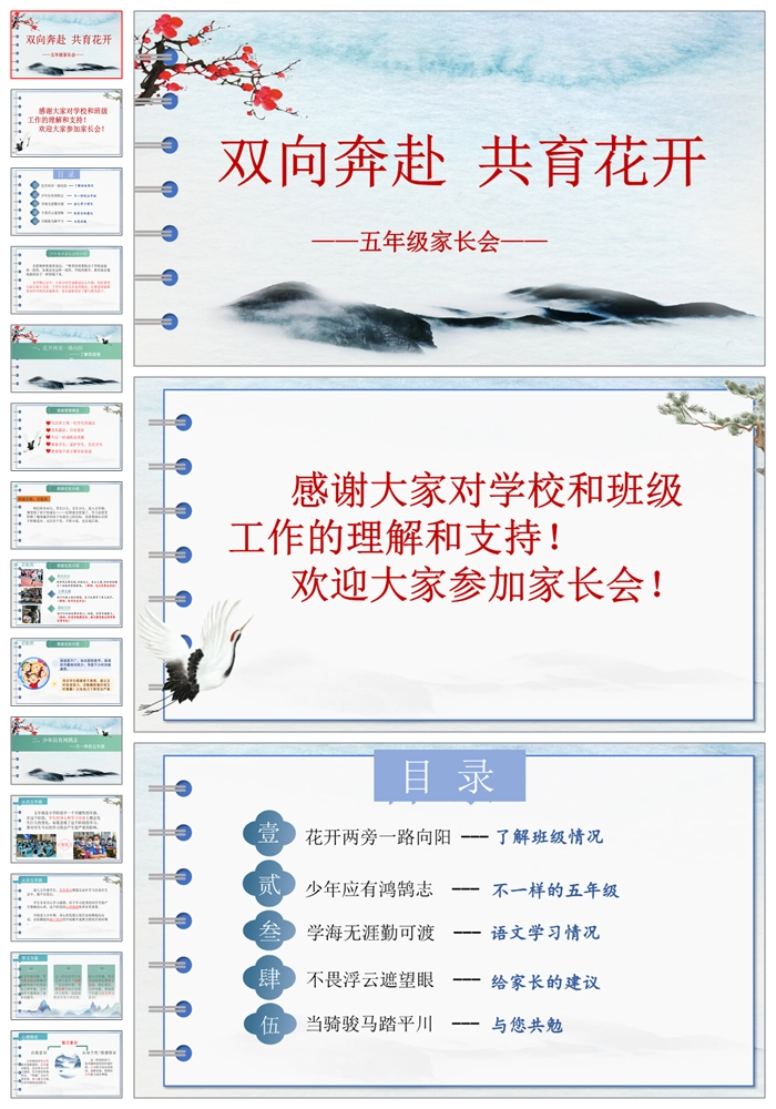 【8175】【五年级家长会】《双向奔赴共育花开》五年级家长会PPT(课件+发言稿)