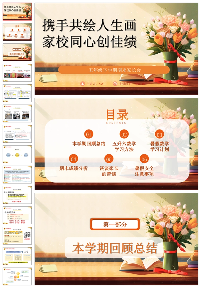 【8213】【五年级家长会】《携手共绘人生画》五年级下学期期末数学家长会PPT(课件+讲稿)