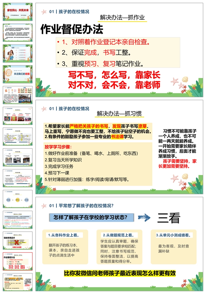 【8286】《家校同心共筑未来》五年级下册语文期末家长会PPT(课件+发言稿+暖场视频)