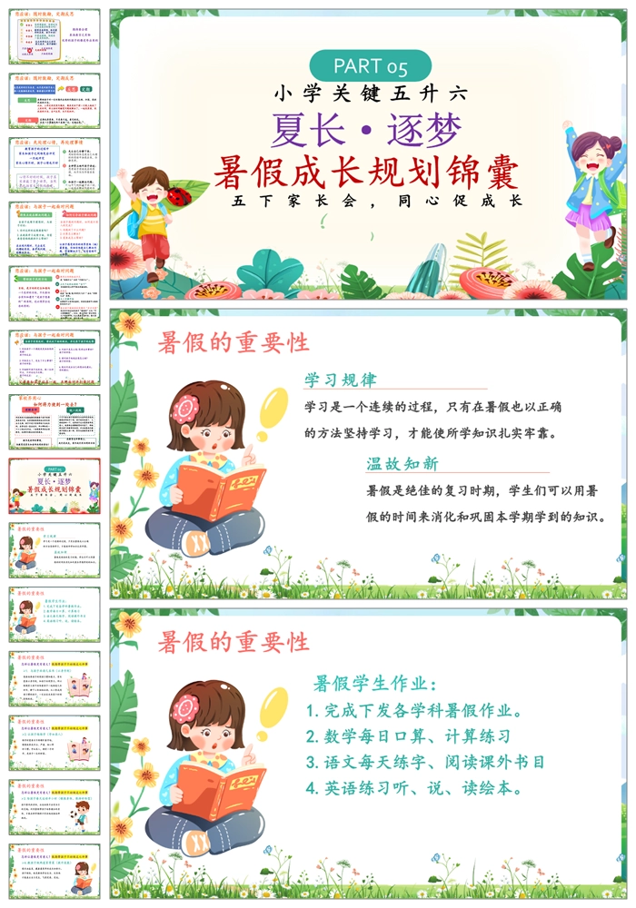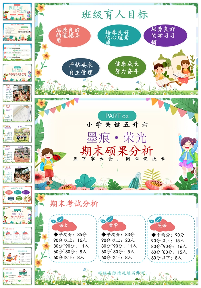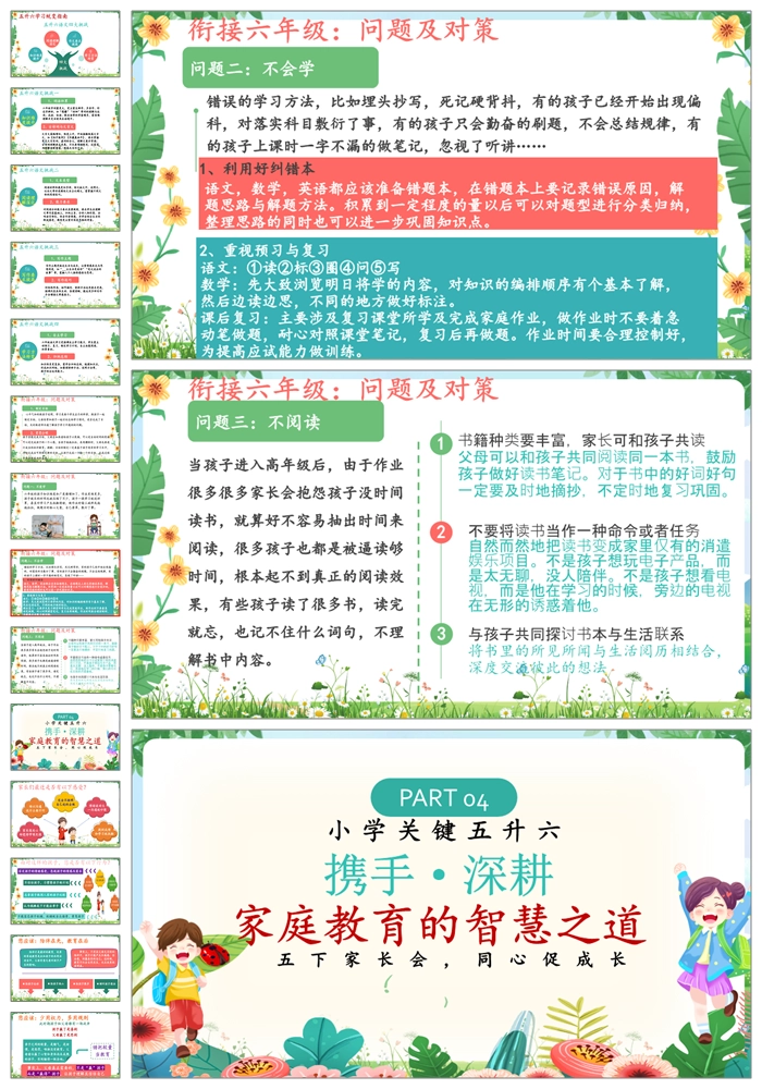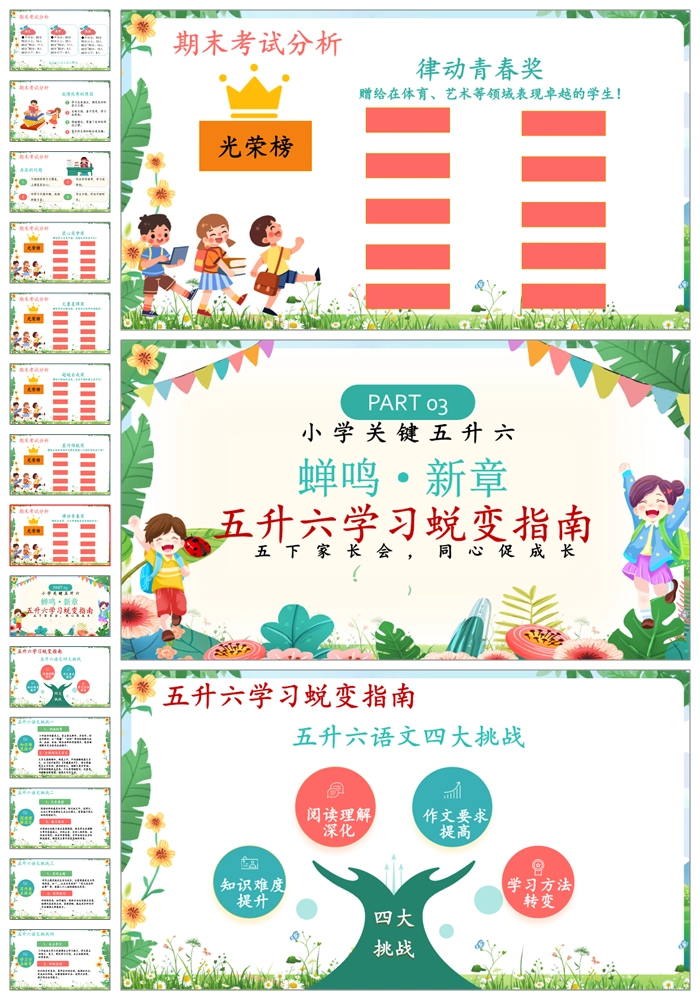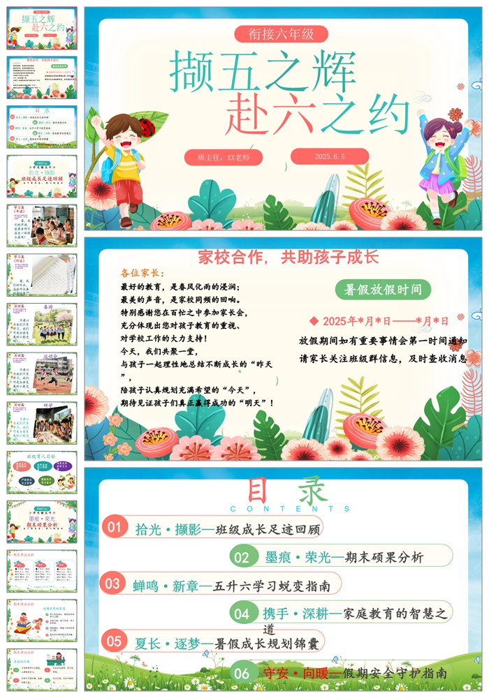 【8434】五年级下(五升六)期末家长会《撷五之辉 赴六之约》ppt课件+配套发言稿