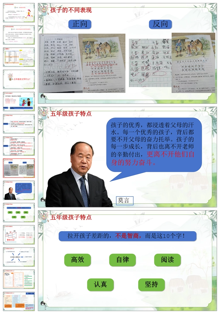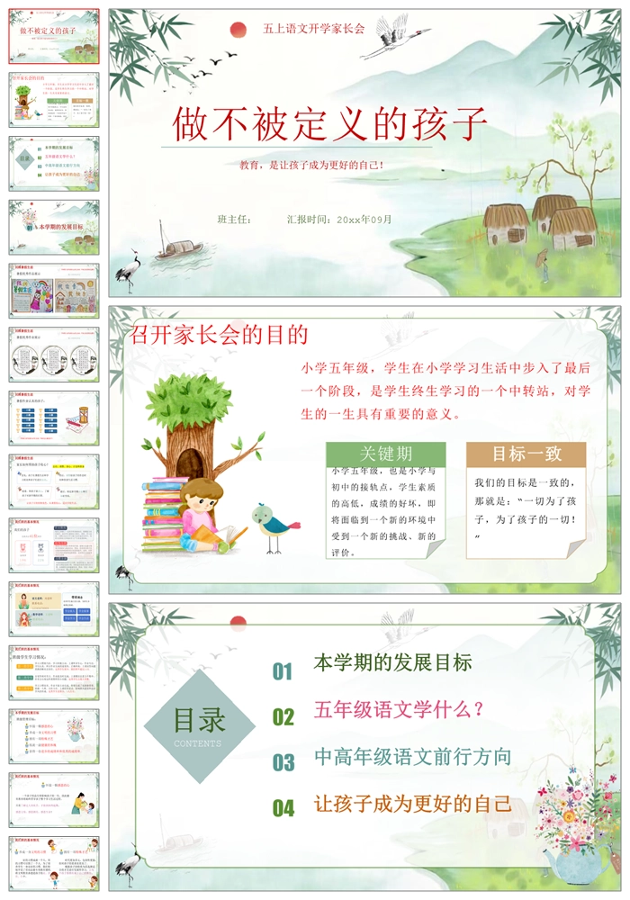 【8458】五年级上学期开学家长会语文班主任《做不被定义的孩子》ppt课件+发言稿