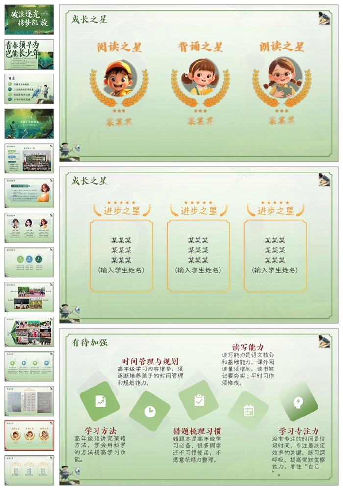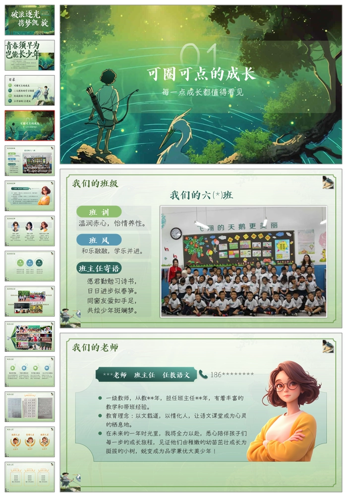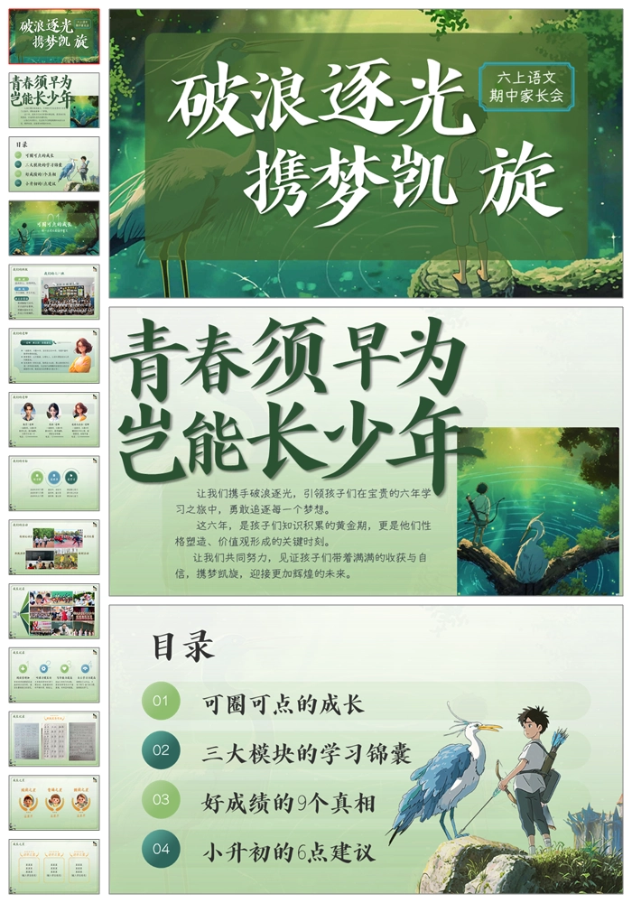 【5113】六上语文期中家长会《破浪逐光携梦凯旋》六年级期中家长会ppt课件+发言稿