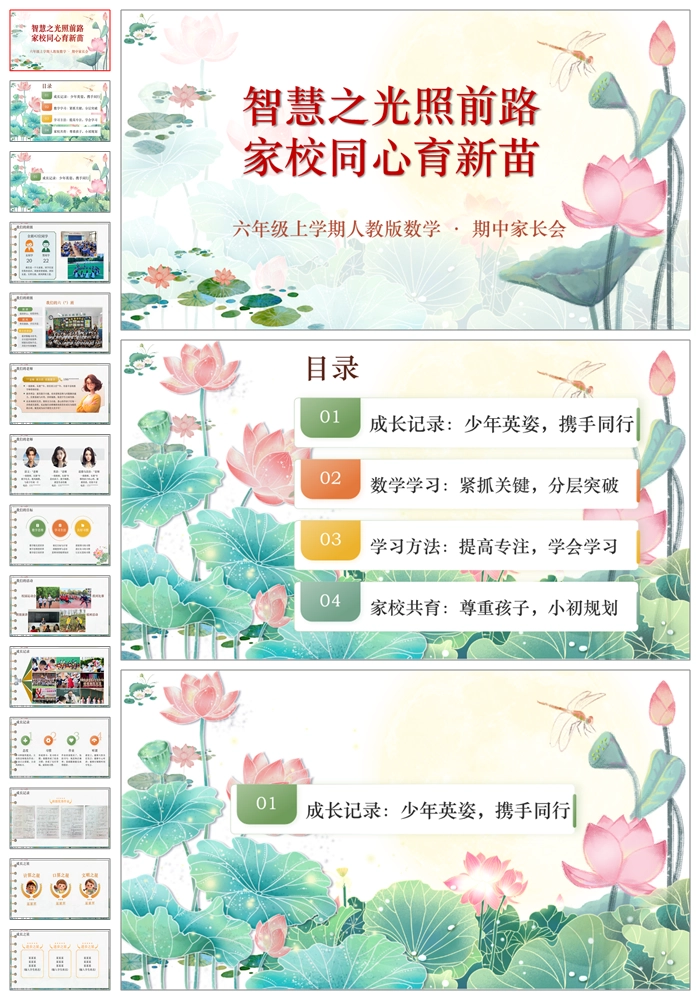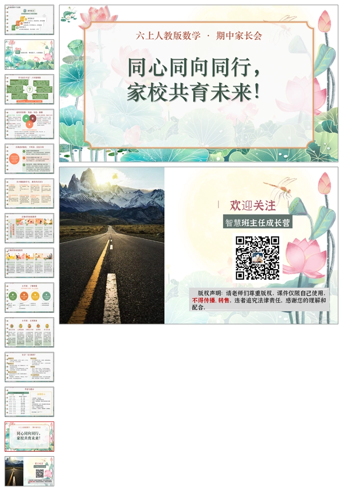 【8196】【六年级家长会】《智慧之光照前路家校同心育新苗》六年级上学期人教版数学期中家长会PPT(课件+讲稿)