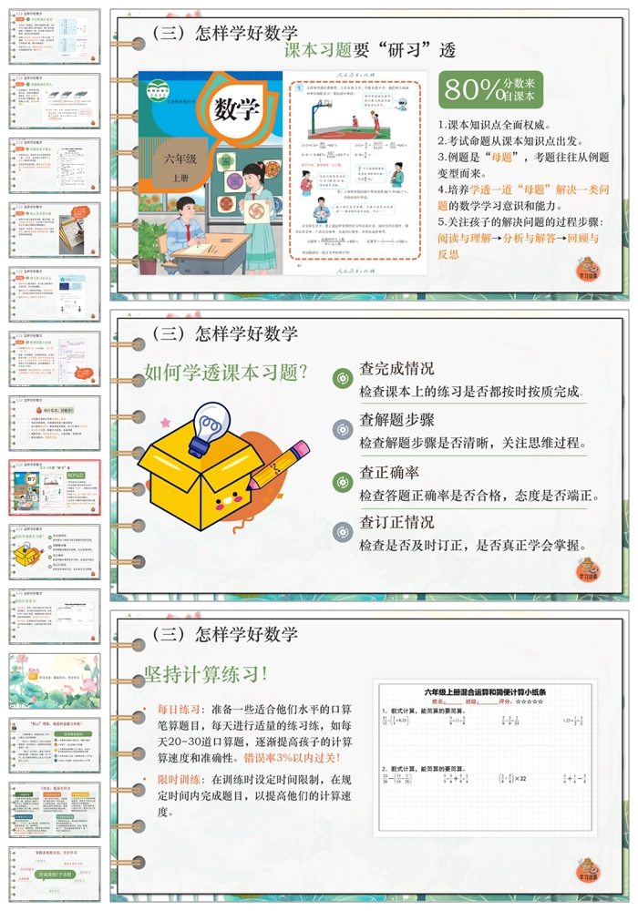 首页 六年级家长会 【8196】【六年级家长会】《智慧之光照前路家校同心育新苗》六年级上学期人教版数学期中家长会PPT(课件+讲稿)