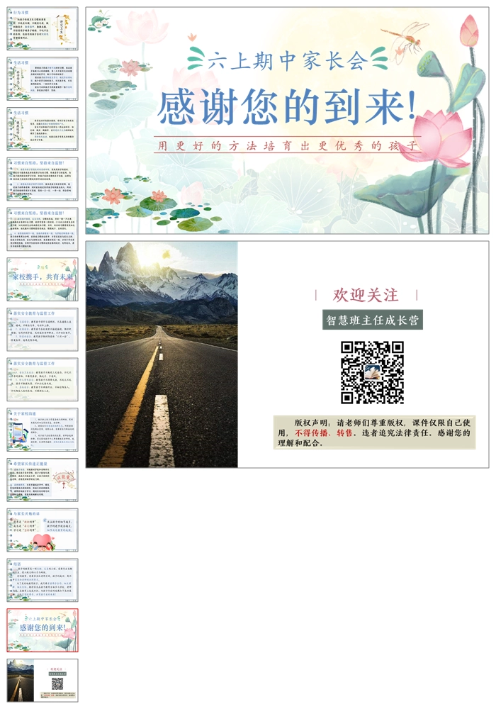 【8200】【六年级家长会】《携手同行共筑梦想》六年级上期中家长会PPT(课件+讲稿)