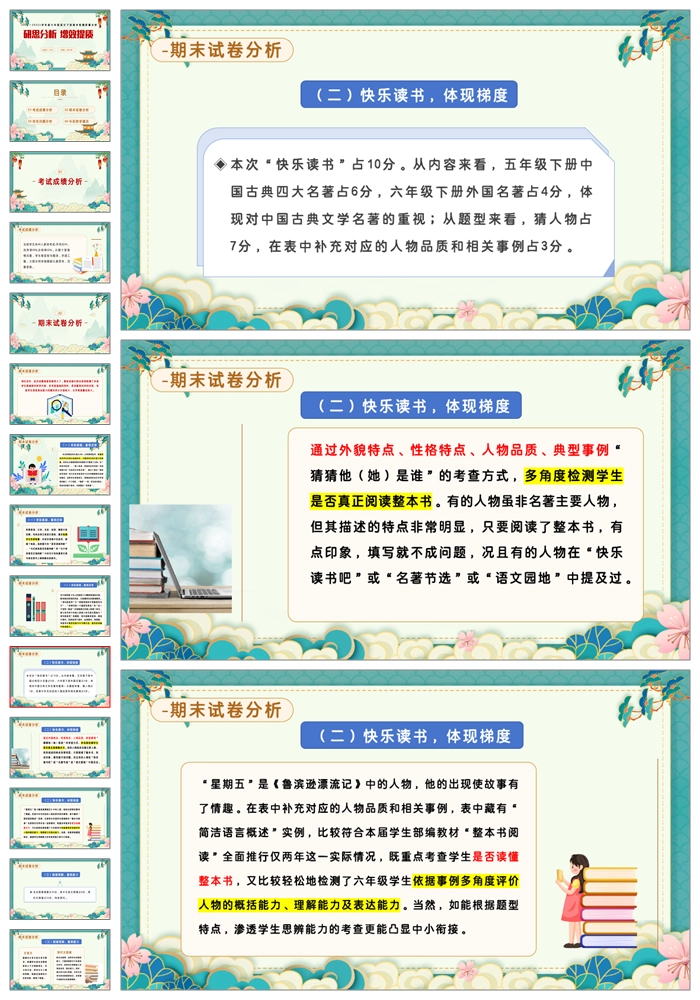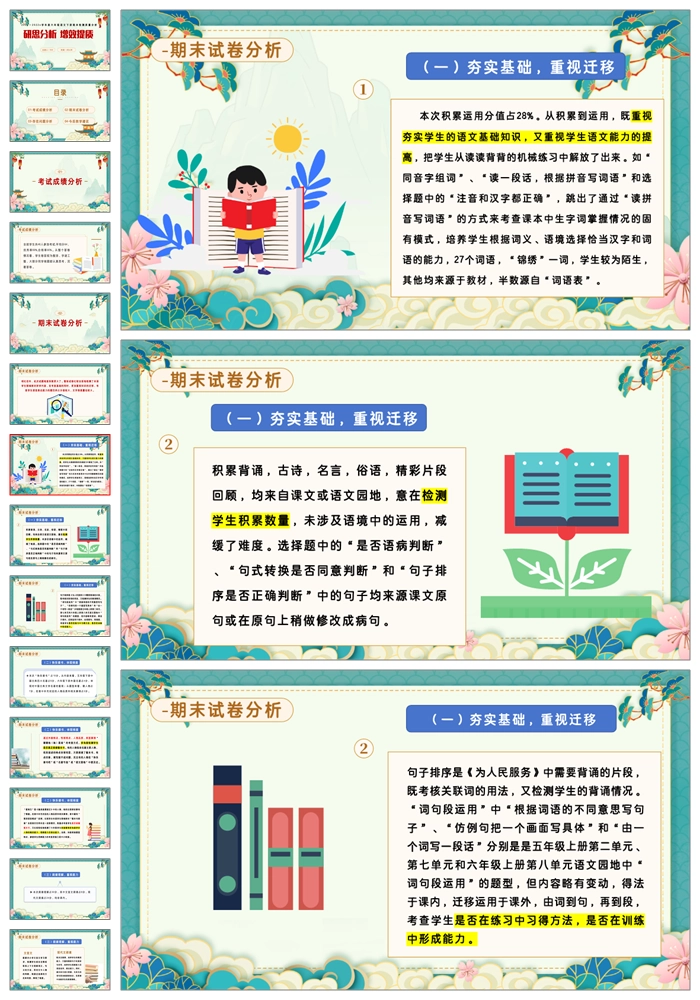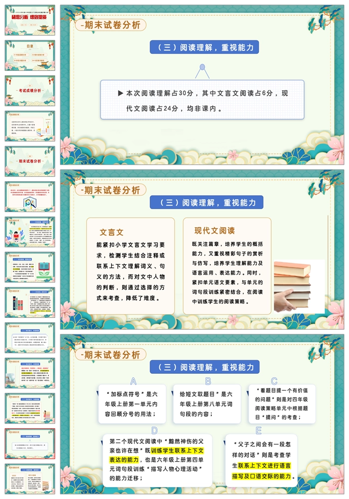 【8402】【六下】【语文】【研思分析 增效提质】六年级语文期末质量分析PPT(课件+发言稿)