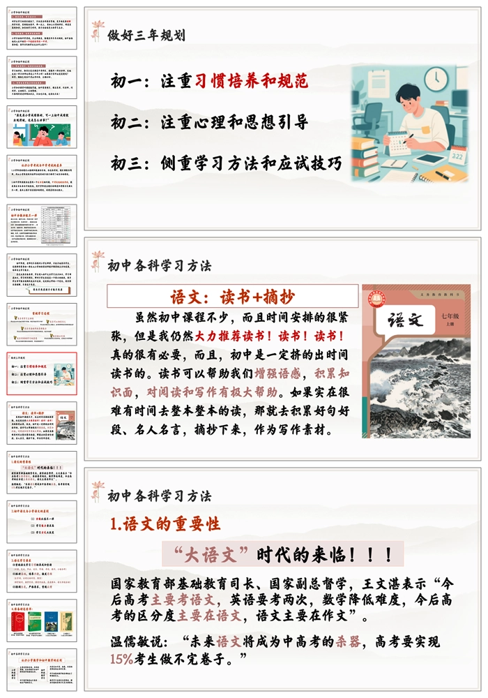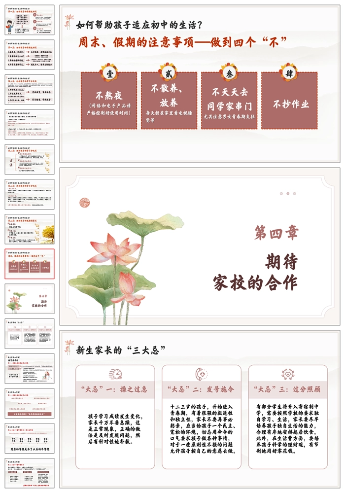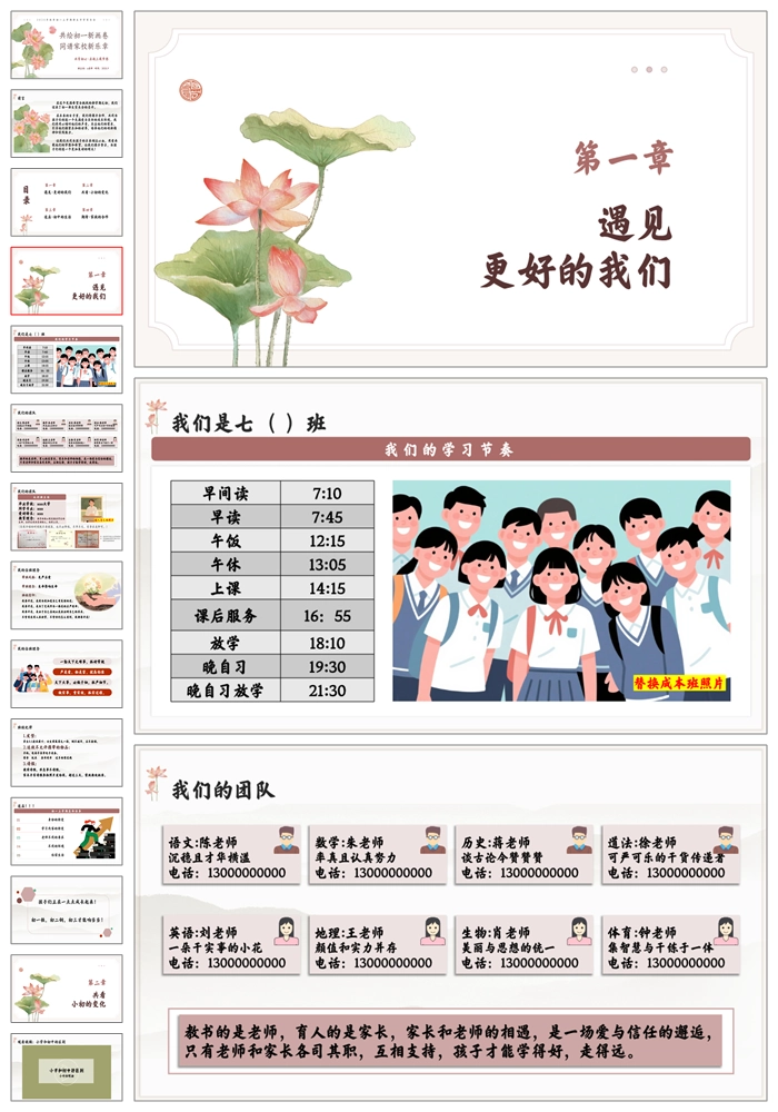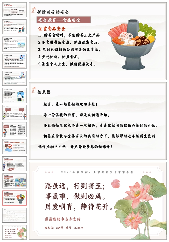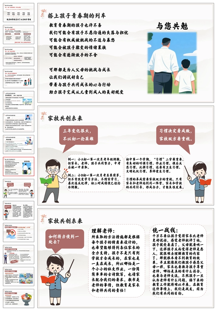 【5059】七年级上学期开学家长会《共绘初一新画卷同谱家校新乐章》初一开学家长会ppt课件+发言稿