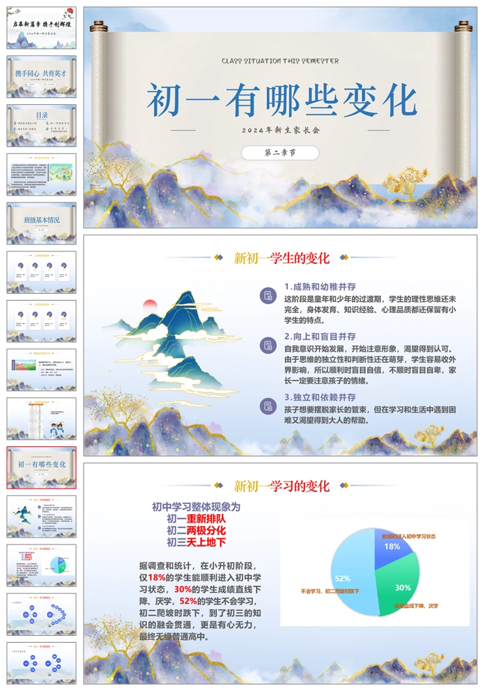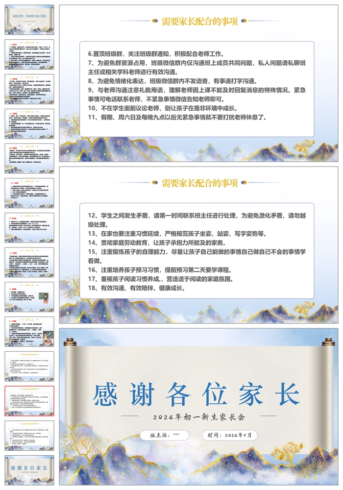 【8137】【初一家长会】《启幕新篇章携手创辉煌》初一新生家长会PPT(课件+讲稿)
